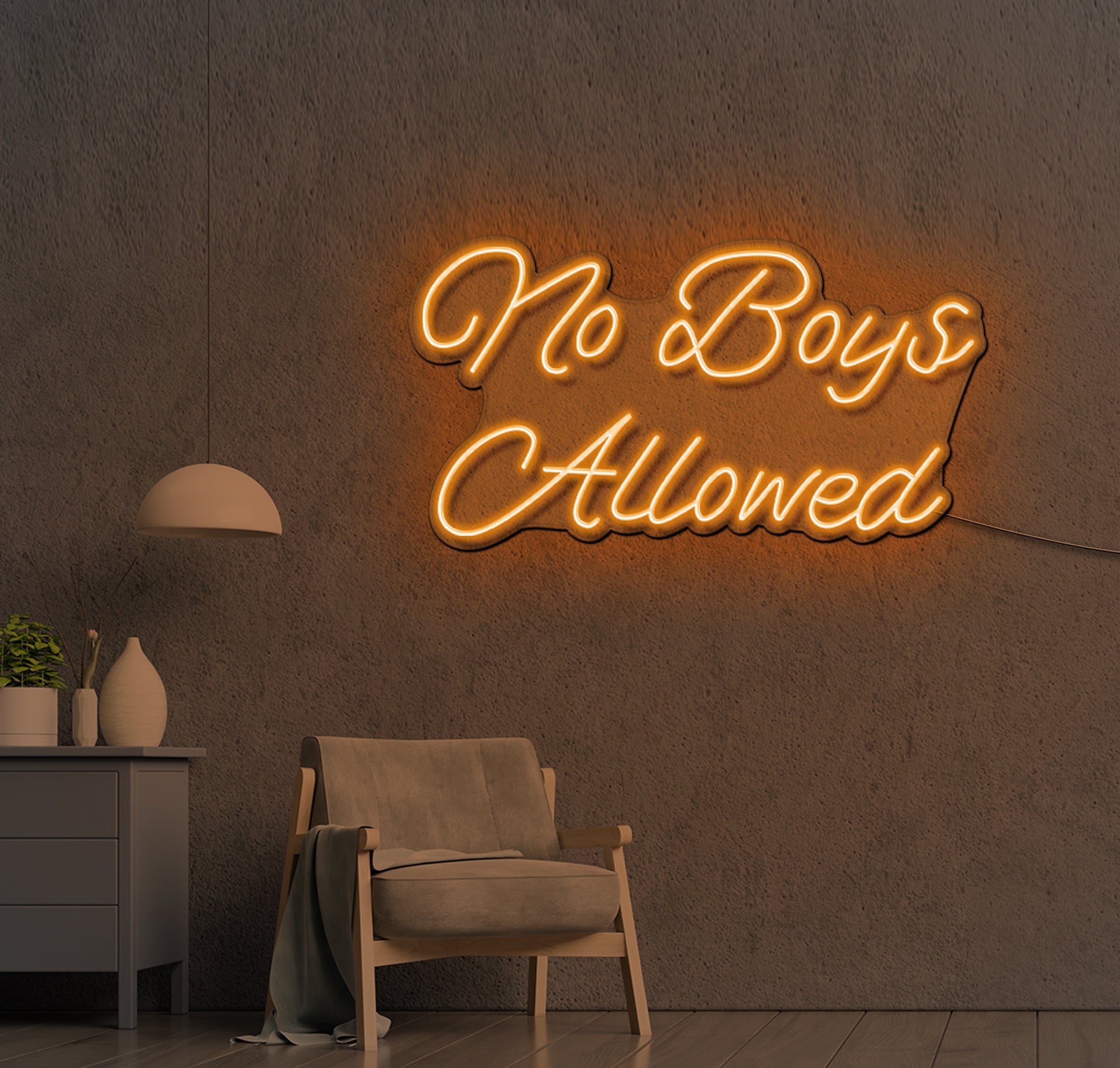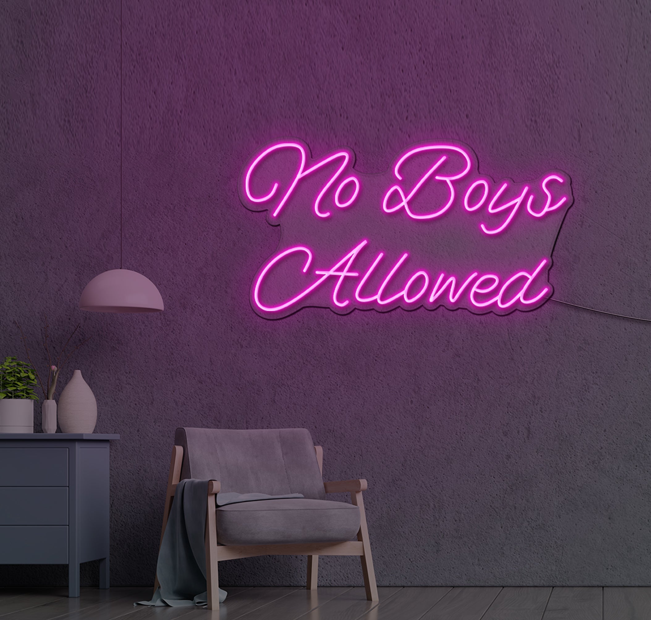 Just like there are man caves there are also babe caves and they are just as determined to keep the opposite sex away. The No Boys Allowed neon wall lights provide the perfect entrance sign for the babe cave in order to ensure that no men are ever allowed in this area. You can get this awesome neon sign with strong pink hues to decorate the place that no man dares enter. When it comes to quality neon signs, we have unbeatable quality and pricing.