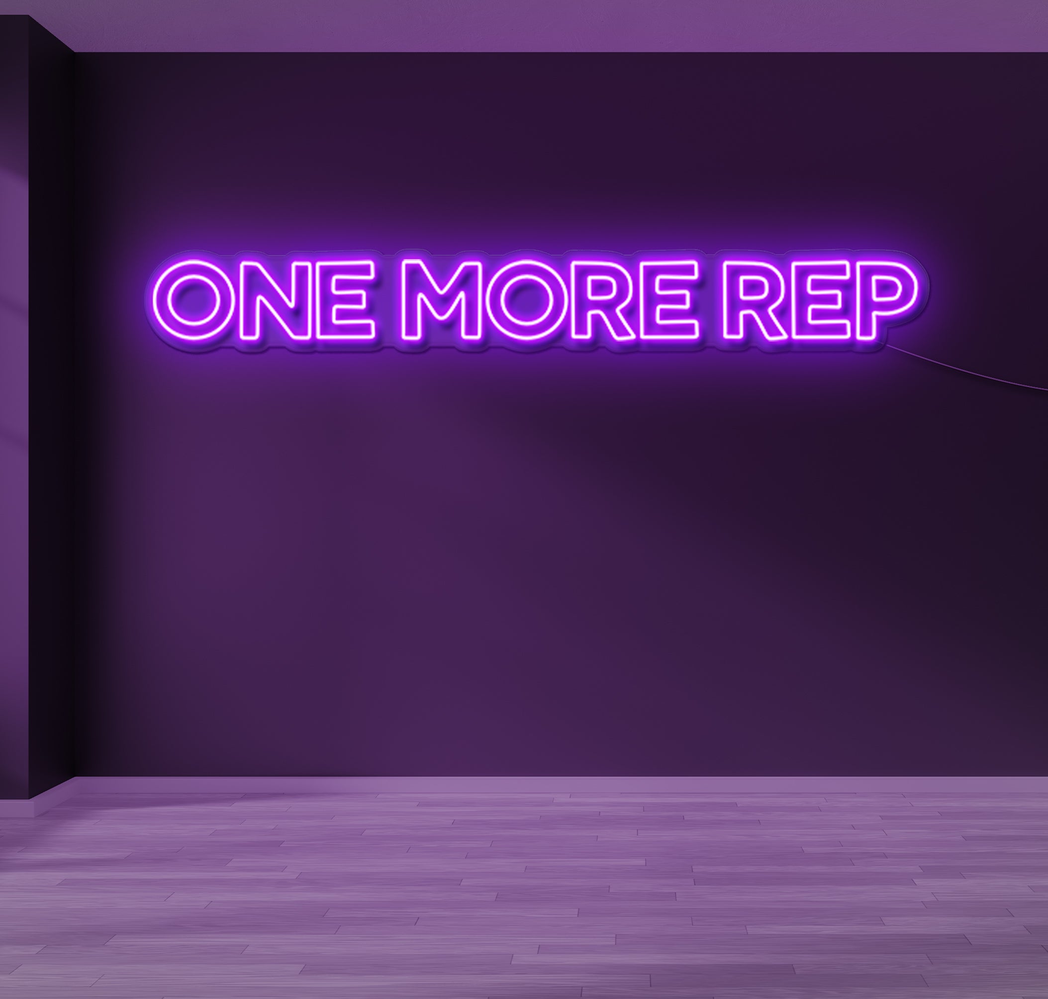 Perfect for weightlifters, bodybuilders, and fitness enthusiasts of all levels, this sign embodies the spirit of perseverance and dedication. Whether you're hitting the weights, doing bodyweight exercises, or engaging in high-intensity interval training, let the "One More Rep LED Neon Sign" be your guiding light toward success.