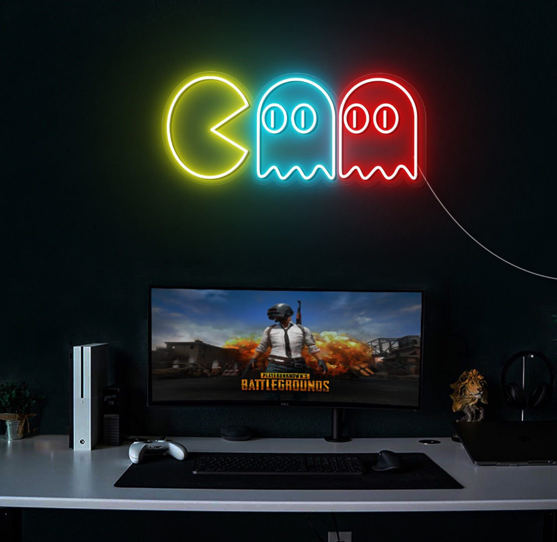 If there has ever been an iconic video game character that goes beyond generations, it has to be Pacman. Nothing screams video game history quite as much as our little hungry yellow friend. This custom neon sign is a perfect way to decorate a gaming room or a gaming store.