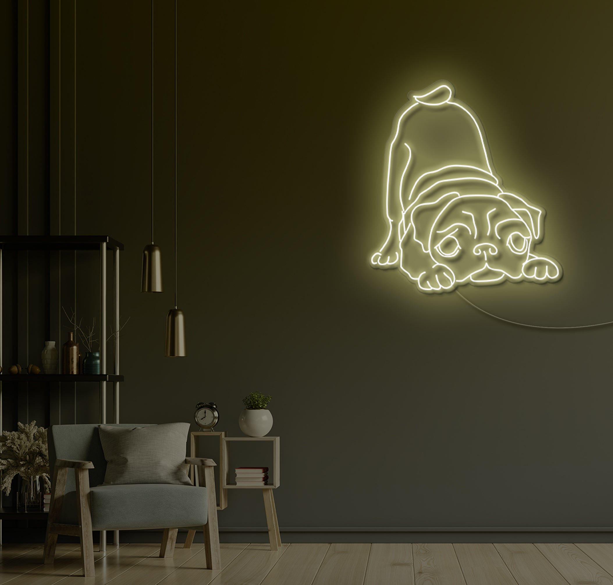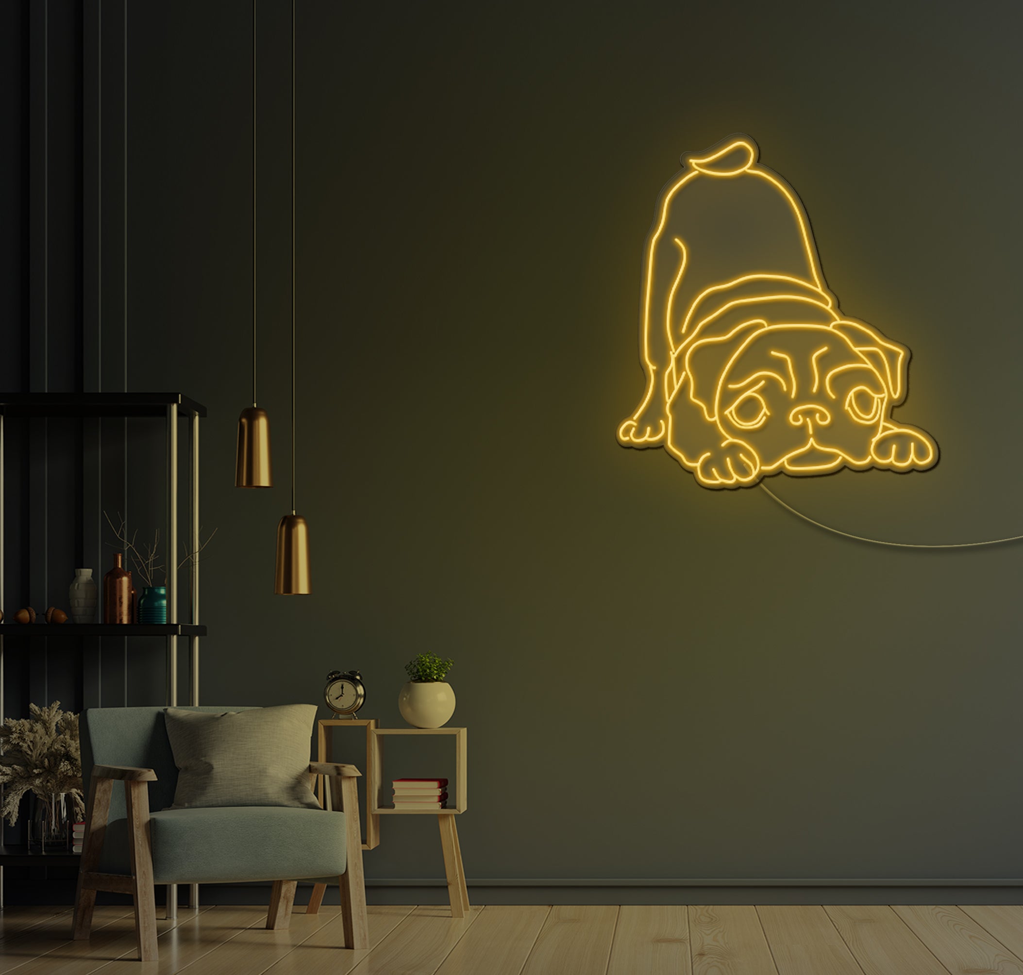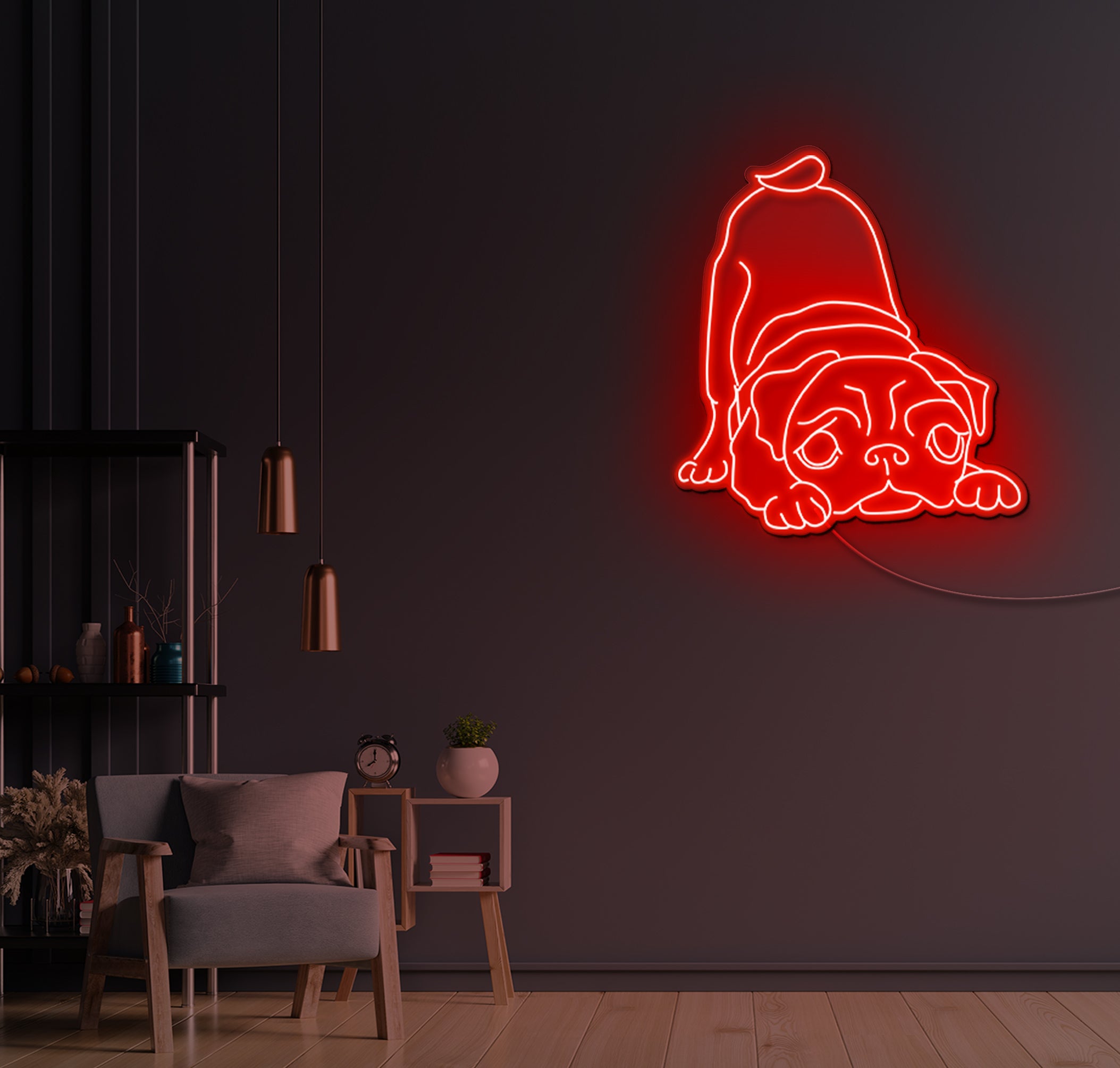 Illuminate your space with the irresistible charm of our "Puppy Eyes LED Neon Sign"! This captivating sign features the adorable silhouette of a puppy, complete with its iconic wide-eyed expression, all brought to life with vibrant LED neon lights.