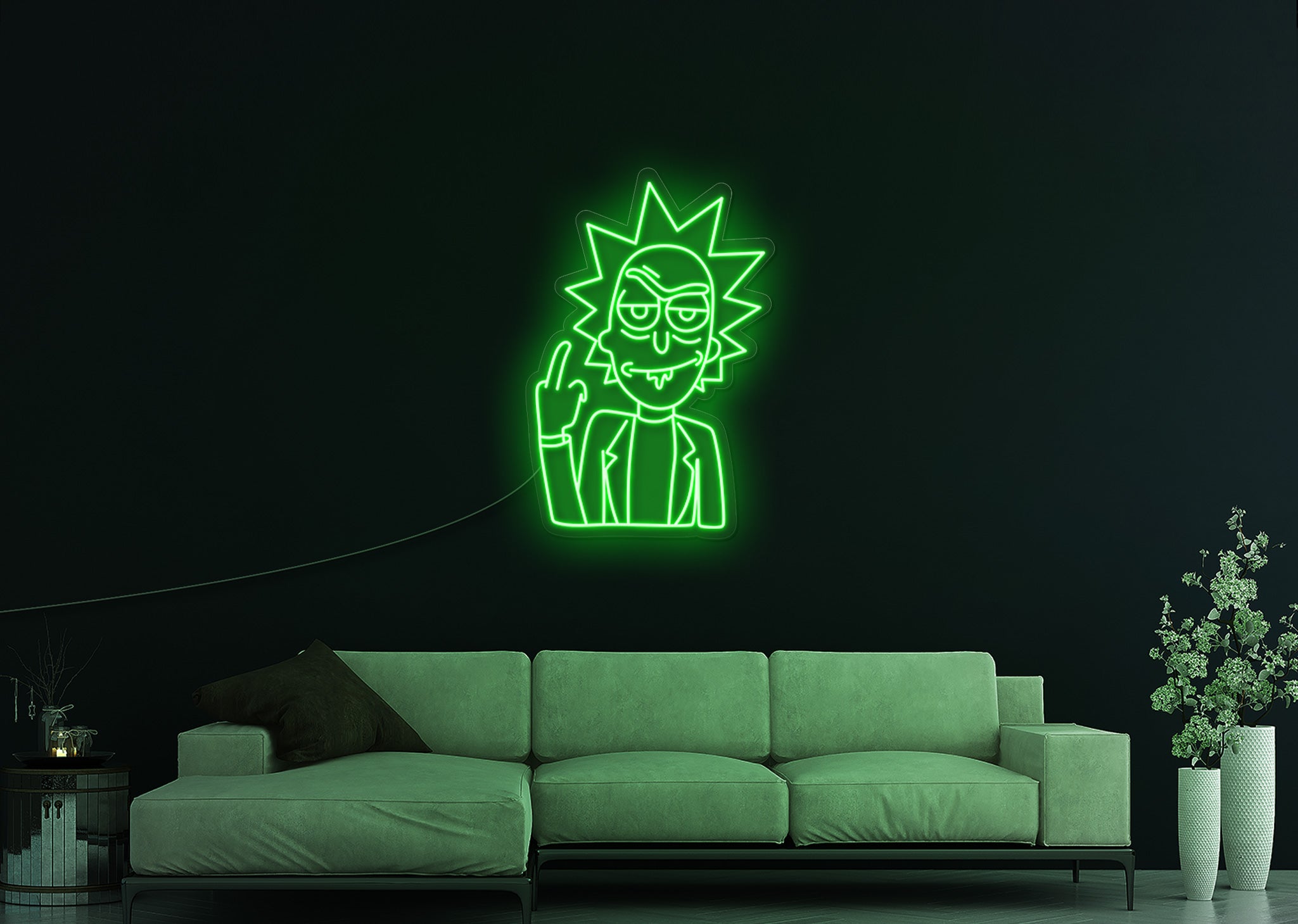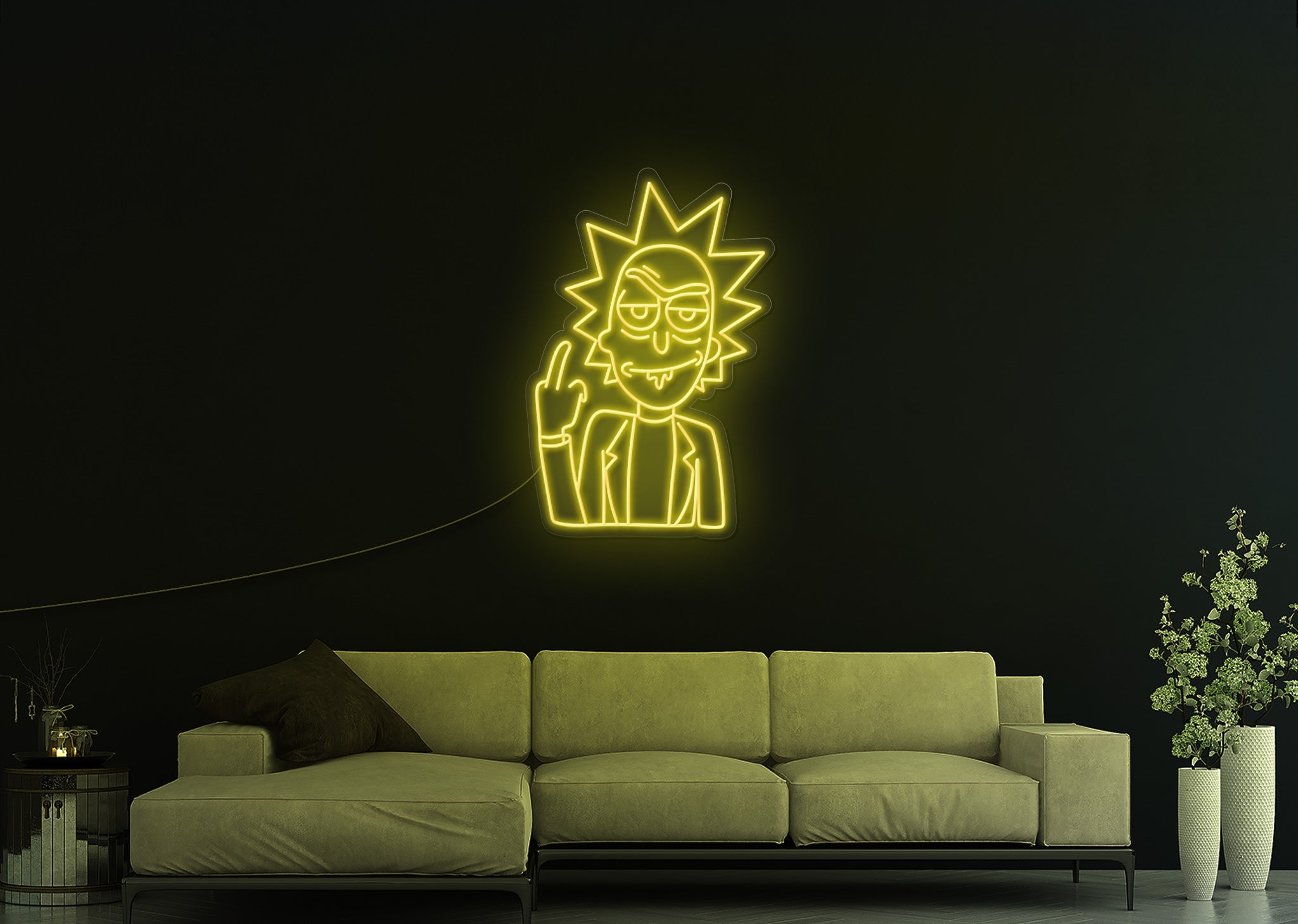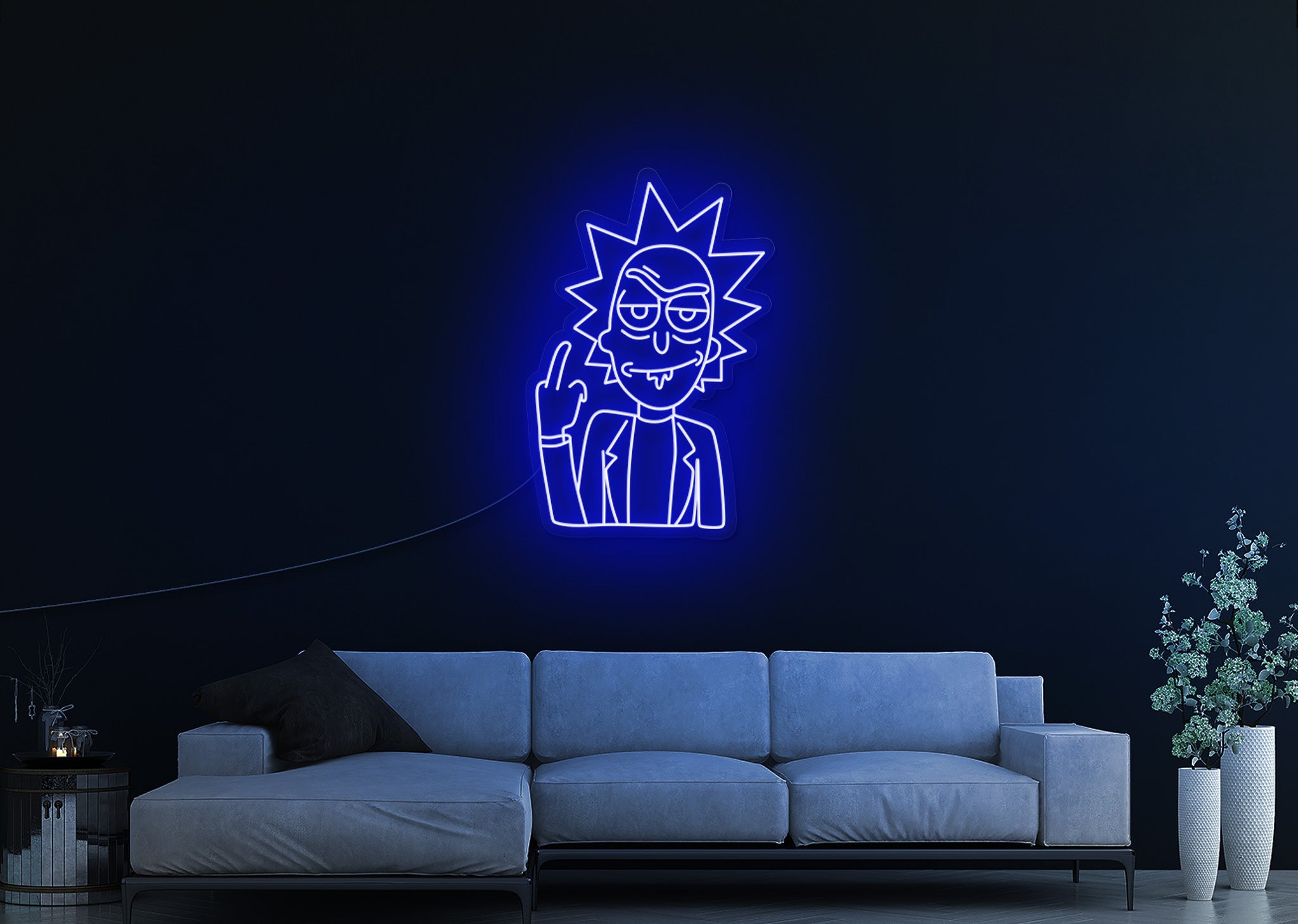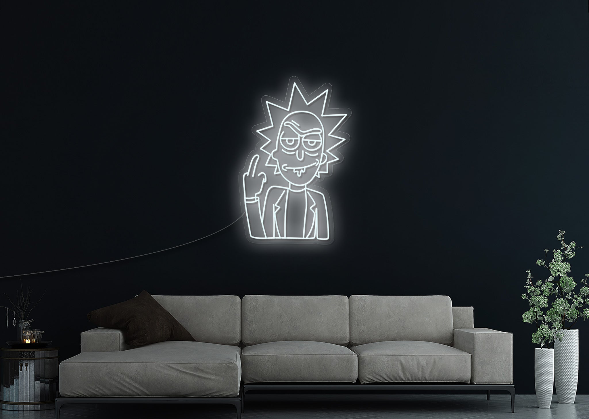 Transform your space into a dimension of infinite possibilities with the "Rick LED Neon Sign." Inspired by the cult-favourite animated series "Rick and Morty," this neon sign captures the irreverent spirit and iconic imagery of the show's eccentric genius, Rick Sanchez.