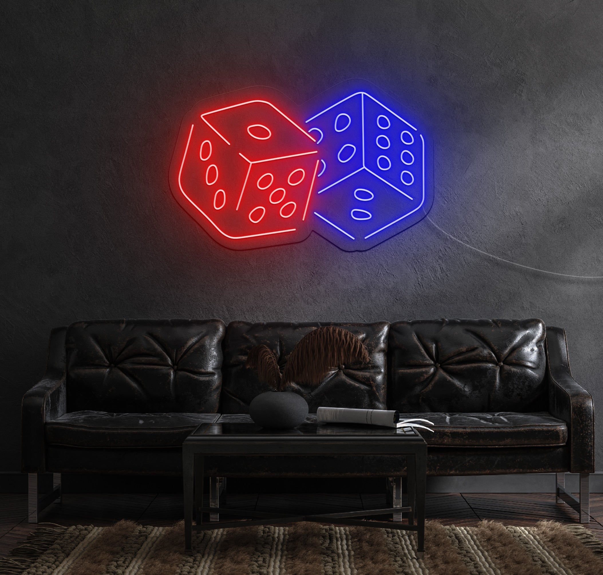 Made with high-quality LED neon technology, the "Roll of The Dice" sign offers a bright, energy-efficient glow that lasts for years. The vivid colours and sharp design mimic the classic look of dice, creating a captivating visual effect that grabs attention. Its sleek construction and easy installation ensure that it fits seamlessly into a variety of spaces, from casual lounges to themed parties.