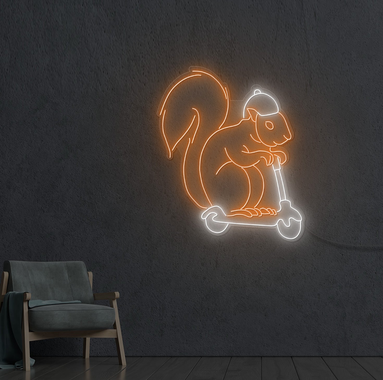 Whether you're a fan of quirky decor or simply looking to add a touch of whimsy to your space, the "Scooter Squirrel LED Neon Sign" is sure to delight. Let this adorable squirrel bring joy and character to your home or office environment, creating a playful atmosphere that sparks conversation and brings smiles to everyone who sees it.