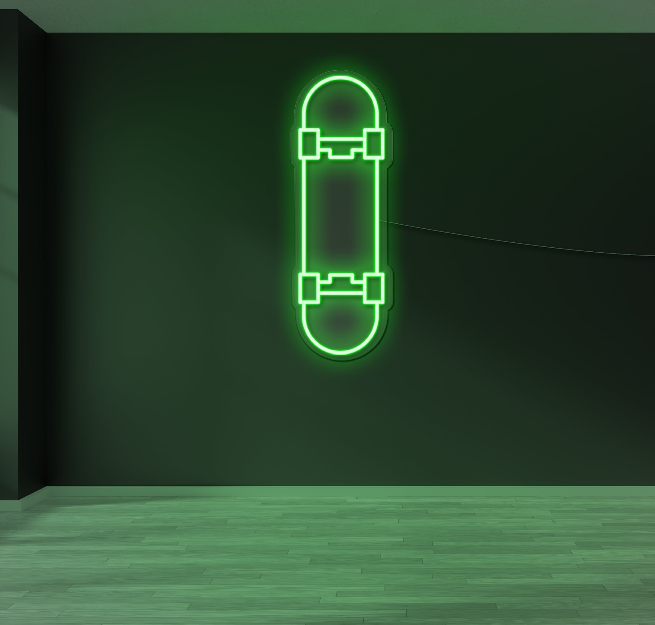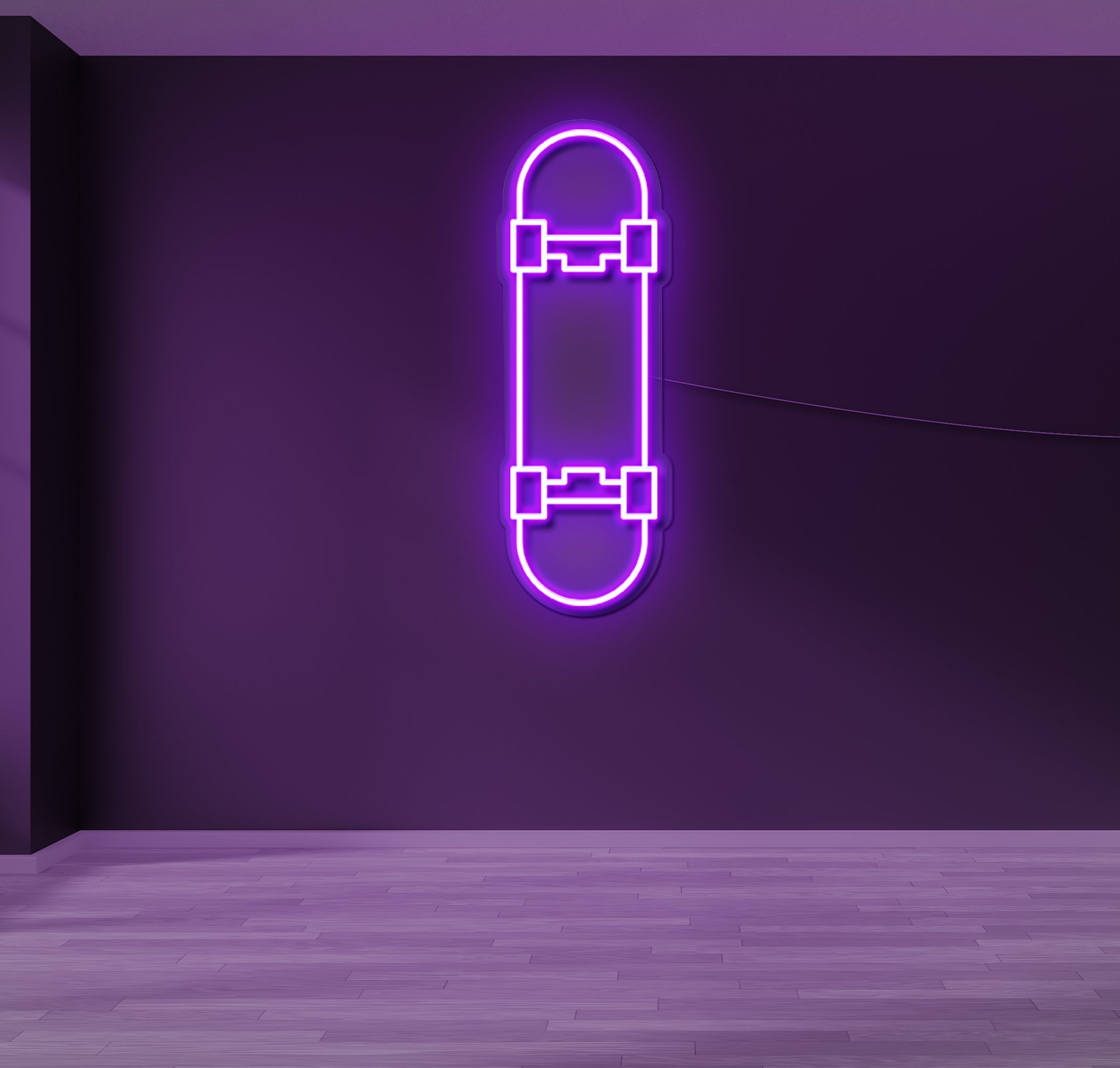 This neon wall art uses a nice lighting effect with the shape of the skateboard. Ideal for a room, for a shop, or as a gift for any friend that shares the love for skateboards.