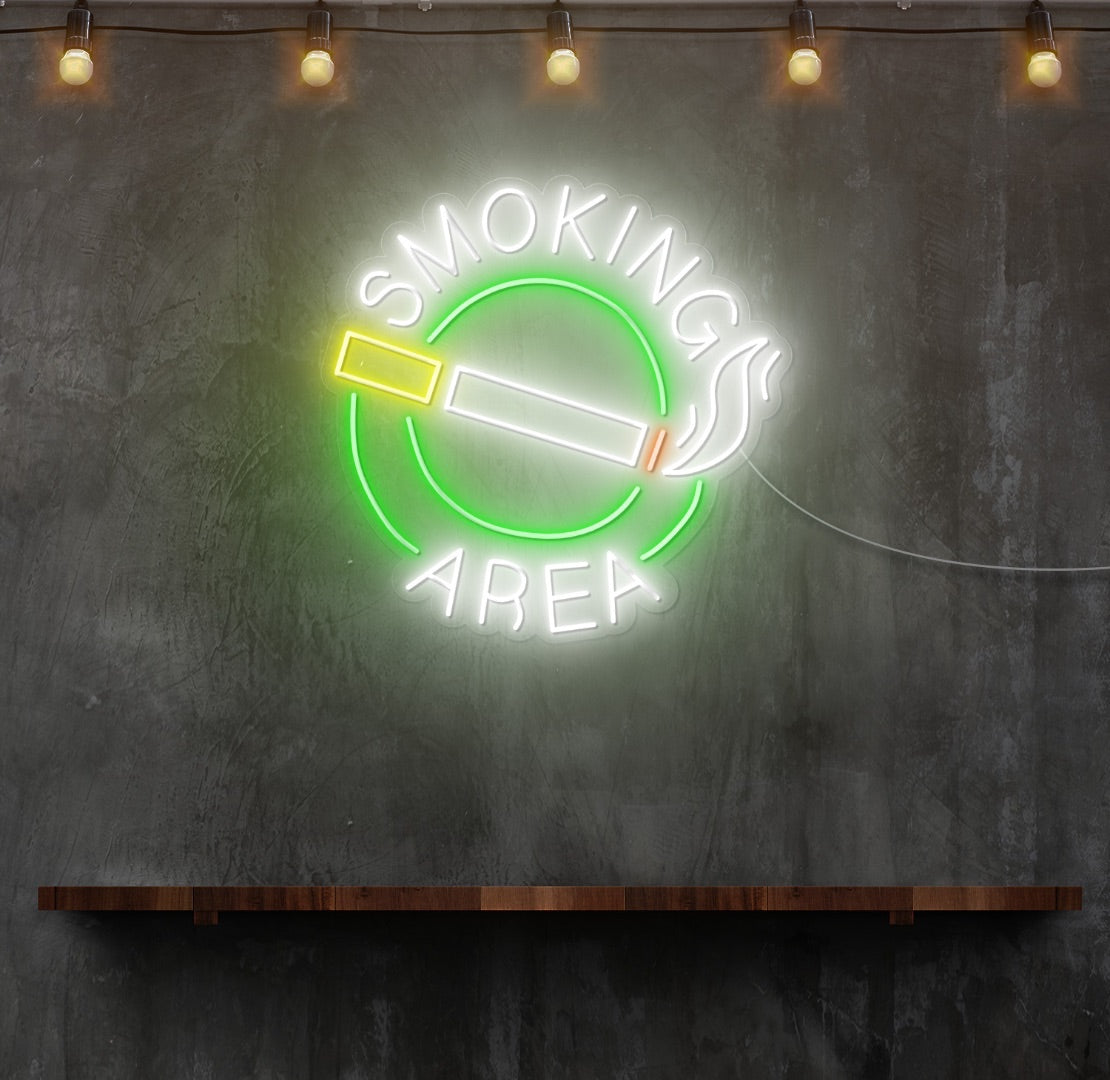 Transform your designated smoking space with the Smoking Area 1 neon sign. This customisable neon light adds a touch of urban flair to your smoking area, creating a vibrant and eye-catching display. Hang it near the entrance or within the smoking zone, and let the Smoking Area 1 neon sign become a distinctive and stylish feature.