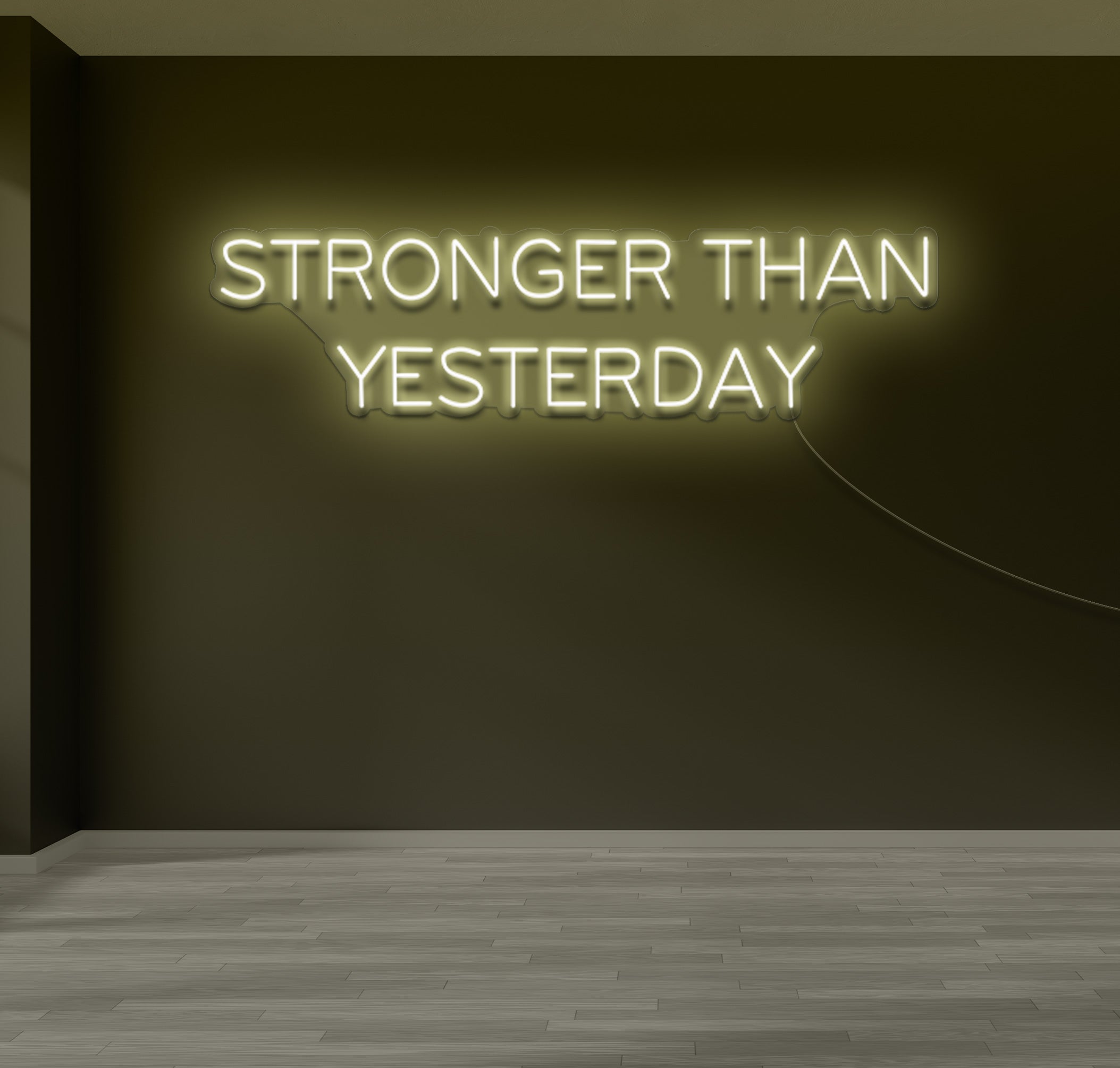 Hang it proudly in your home gym, fitness studio, or workout space to create an environment charged with positivity and drive. With its captivating glow and impactful message, the "Stronger Than Yesterday LED Neon Sign" is the perfect addition to any fitness enthusiast's collection, serving as a constant source of motivation to push harder, train smarter, and strive for greatness.