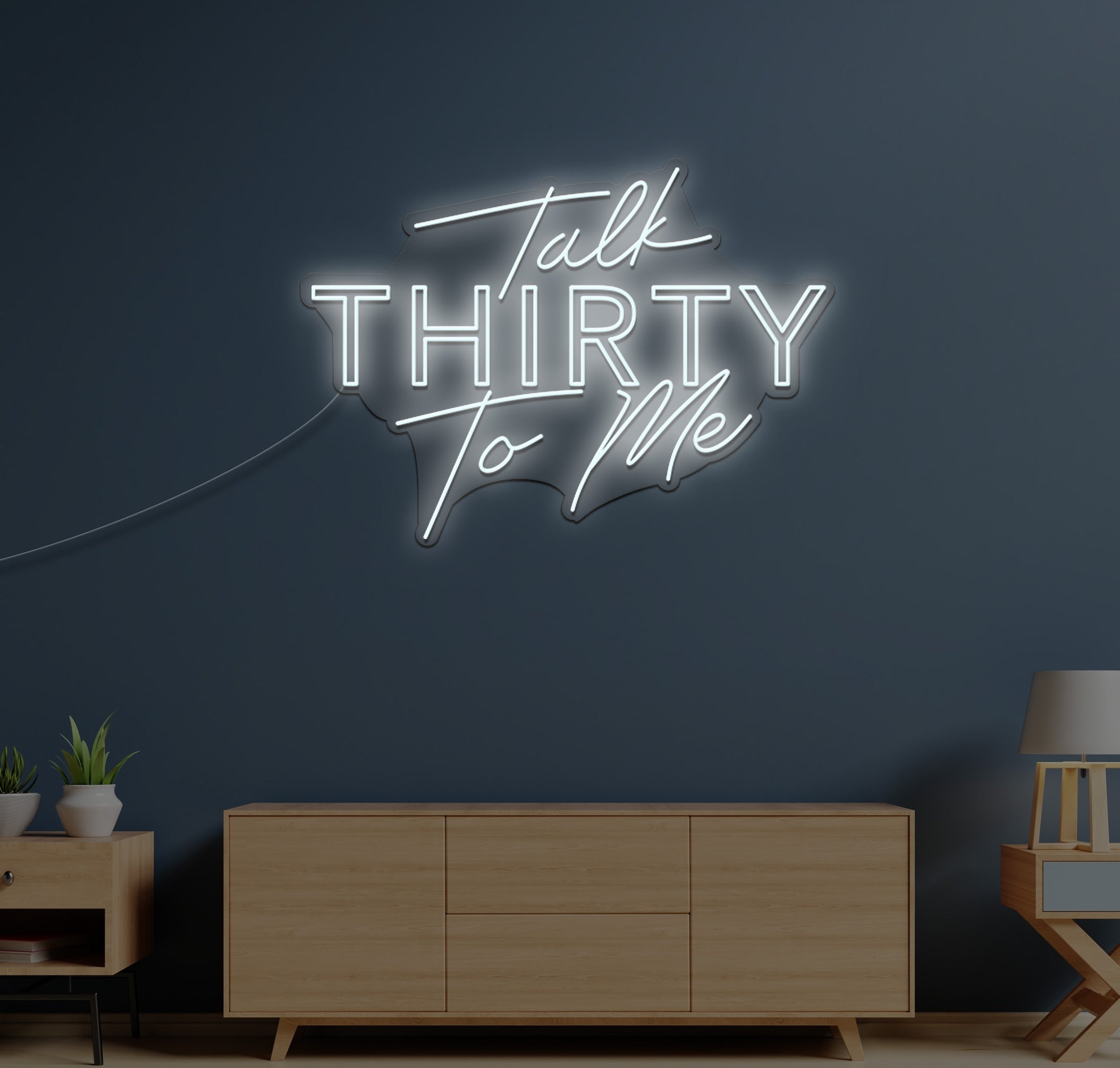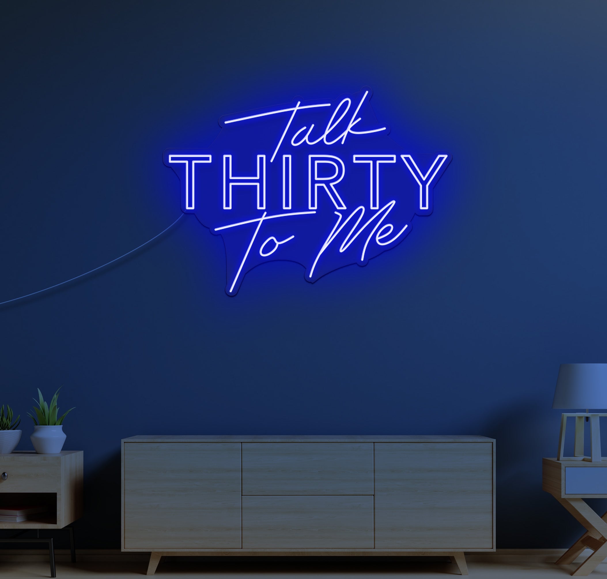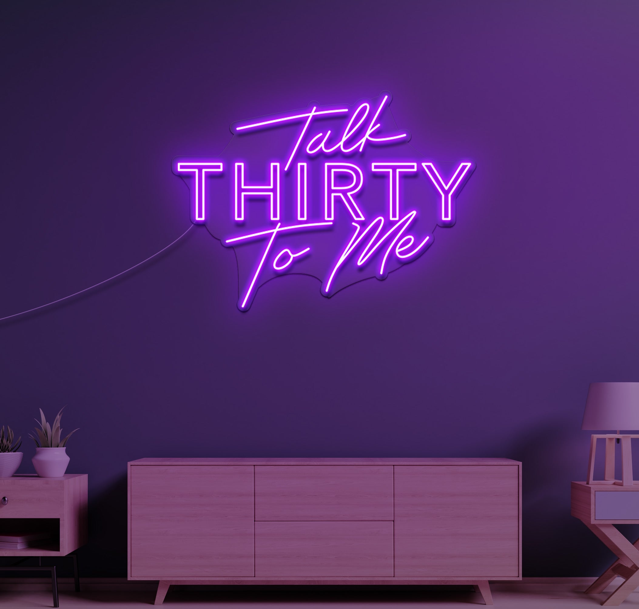 Illuminate your milestone celebration with the "Talk Thirty To Me LED Neon Sign." This vibrant and stylish sign is the perfect addition to any 30th birthday party, anniversary, or special event.