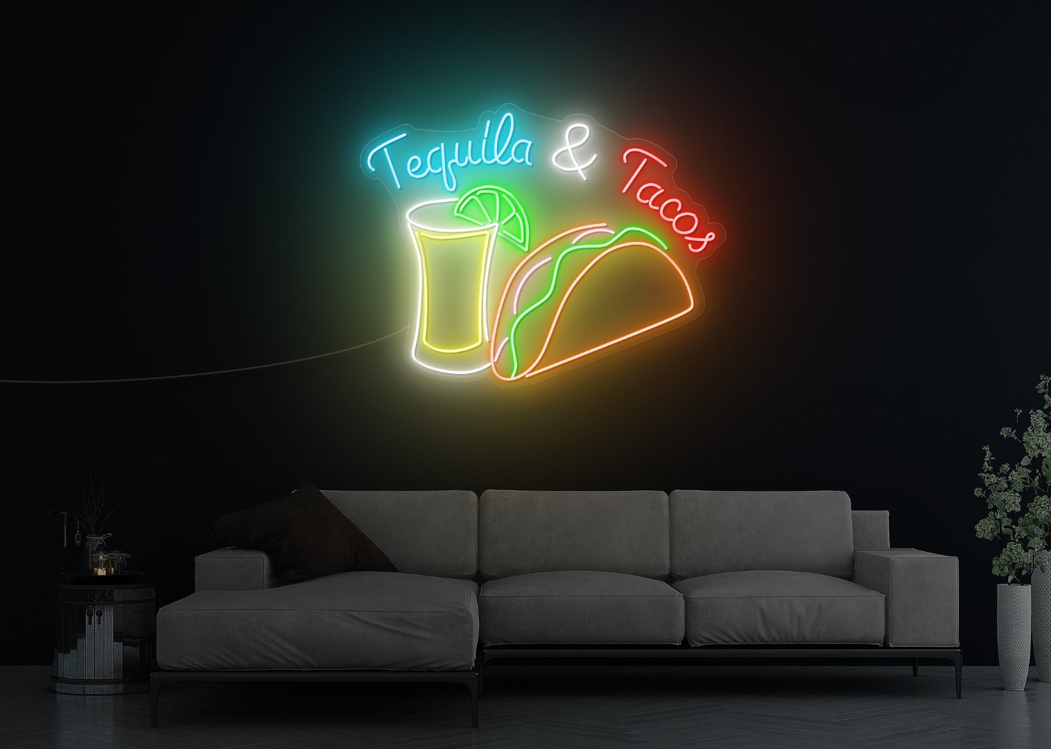Featuring bold and vibrant colors, our LED neon sign illuminates the words "Tequila" and "Tacos" in a captivating display that instantly evokes the spirit of fun and fiesta. Whether you're serving up margaritas or crafting mouthwatering tacos, this sign is the perfect complement to your menu.