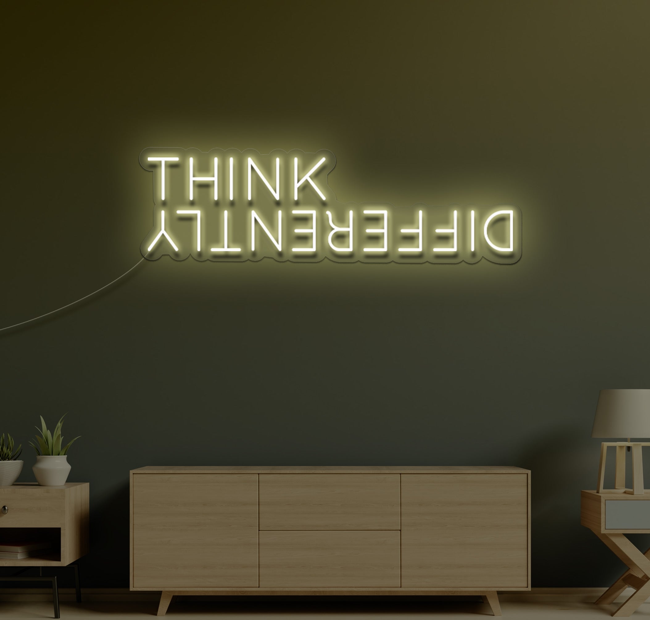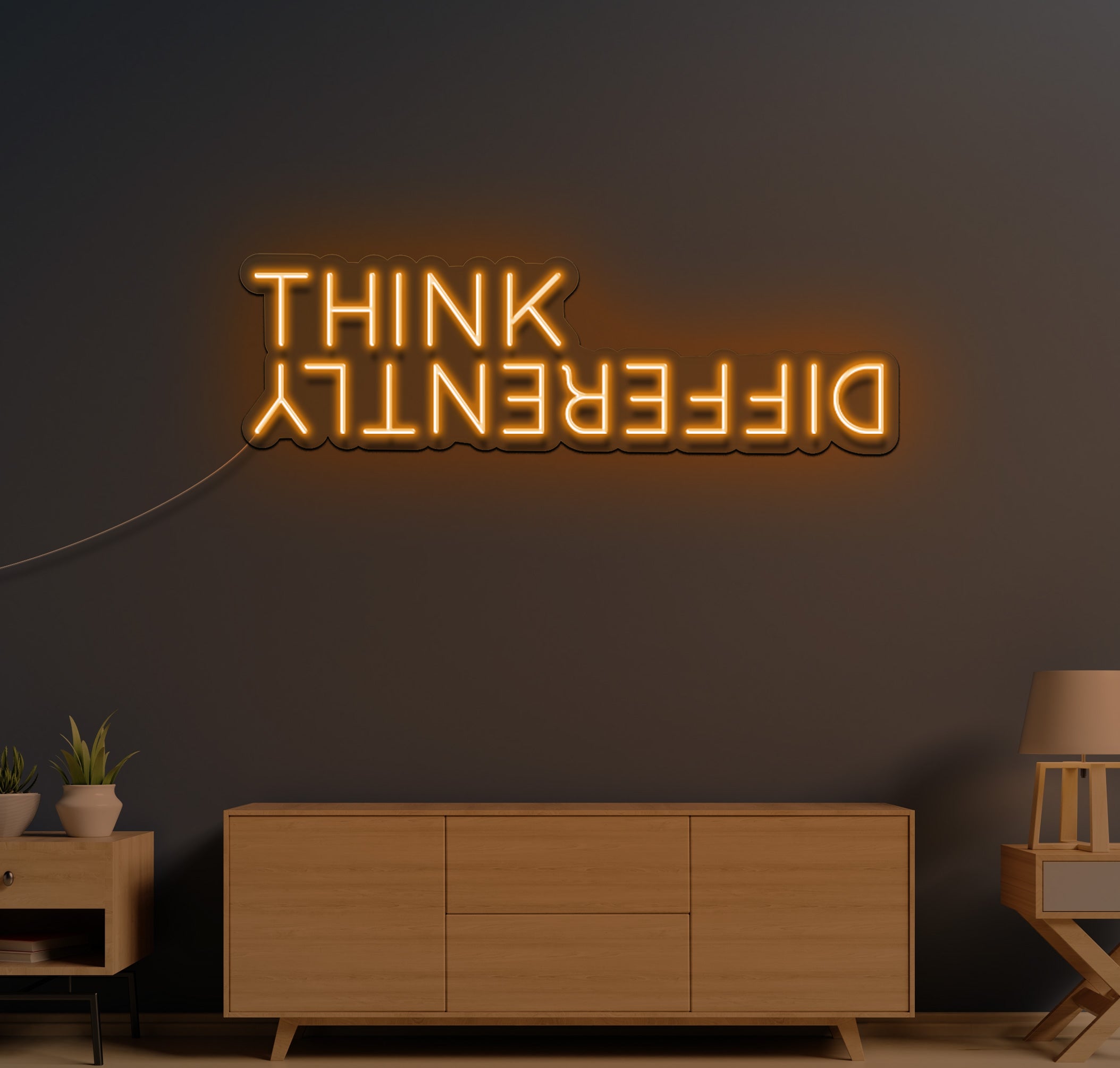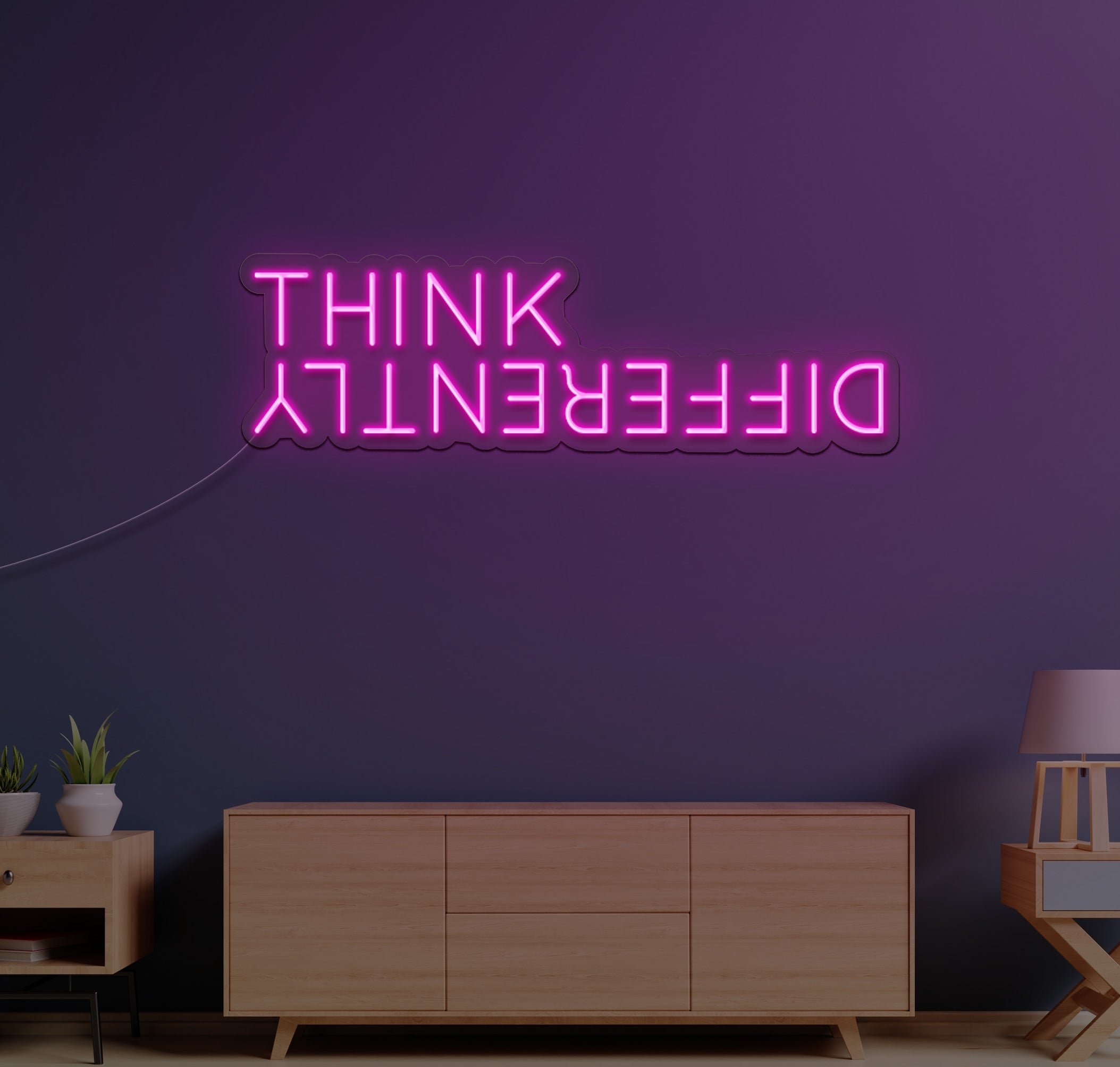 Crafted with high-quality LED lights, the "Think" sign emits a vibrant glow that draws attention and creates an inviting atmosphere. The bold font and minimalist design make it a versatile addition to your home, office, or event decor.