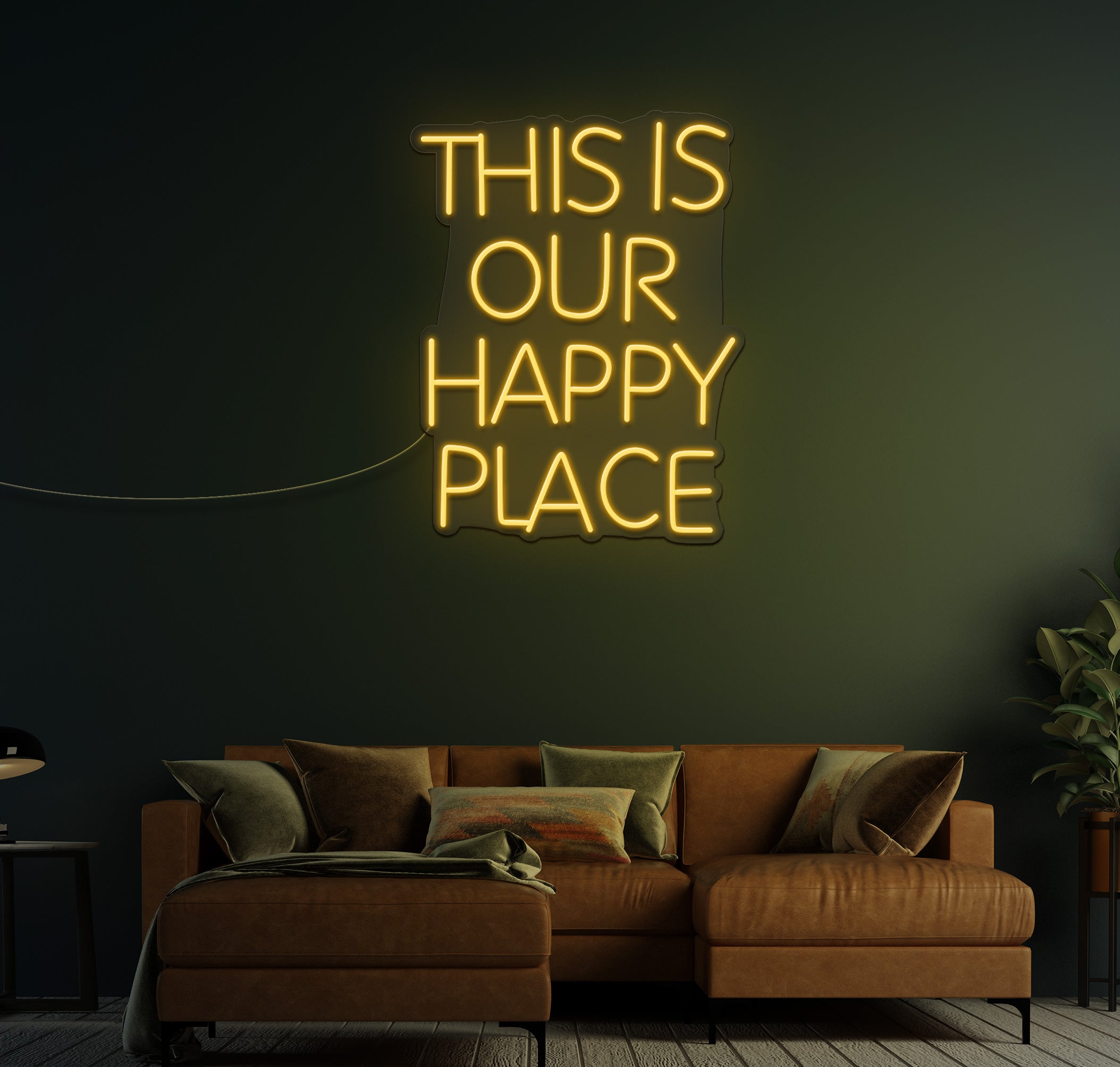 Transform your space into a haven of happiness and relaxation with the "This is Our Happy Place" LED Neon Sign. This charming and eye-catching sign adds a touch of warmth and joy to any room.