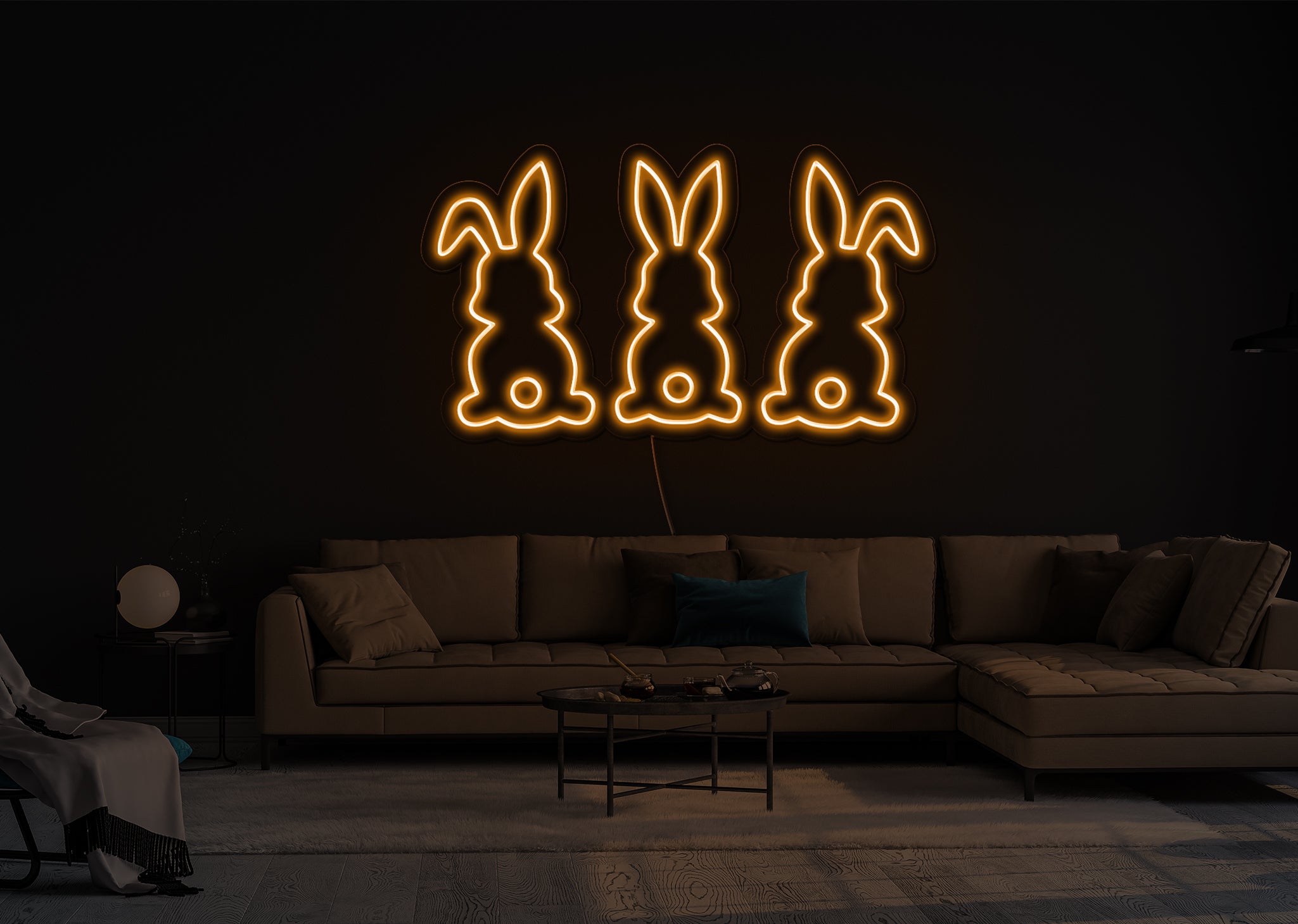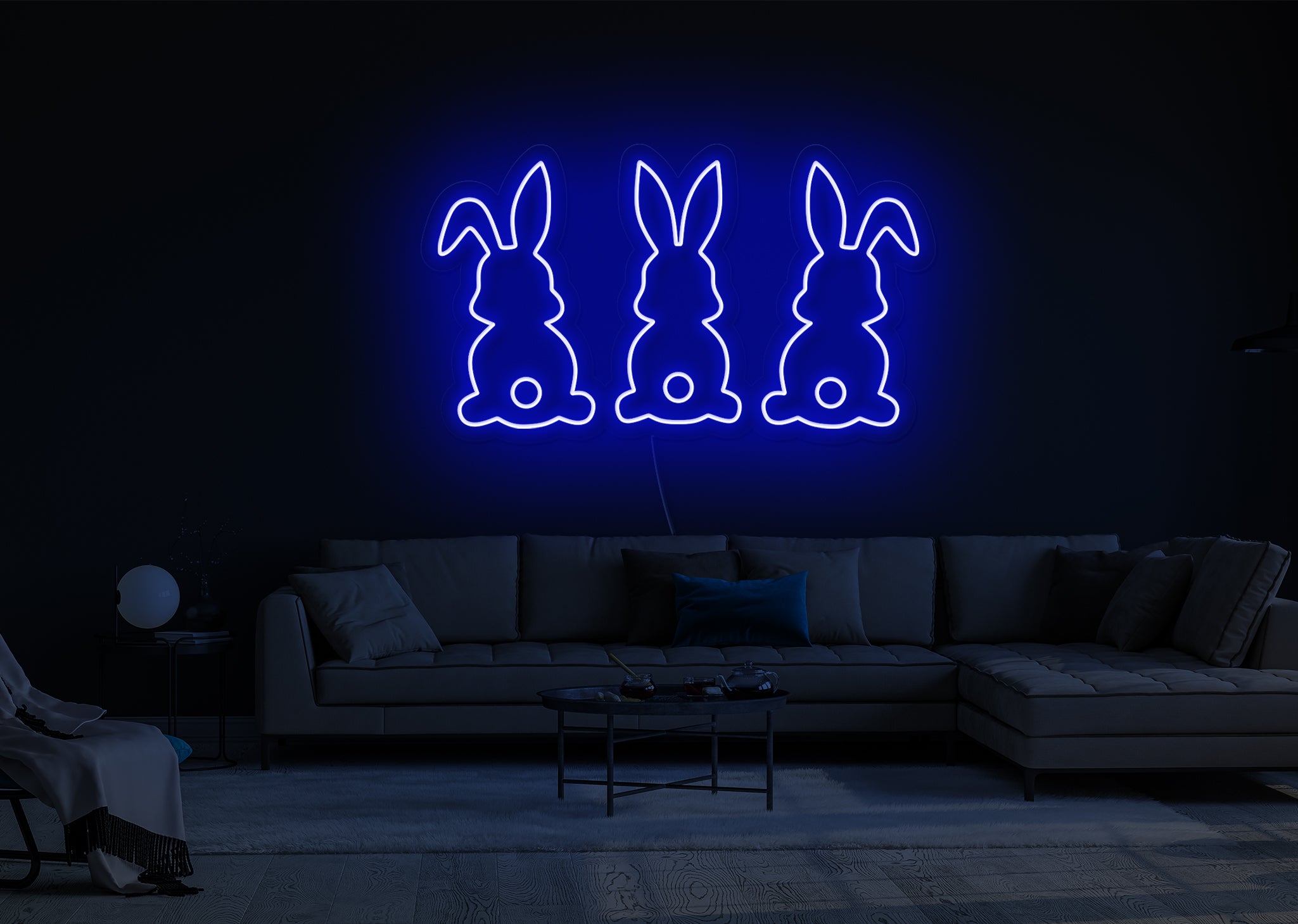 Crafted using energy-efficient LED technology, the "Three Bunnies" sign is safe, durable, and cool to the touch – making it ideal for both homes and businesses. From neon wall art in kids' bedrooms to outdoor neon signs for business events, this piece adds instant personality.