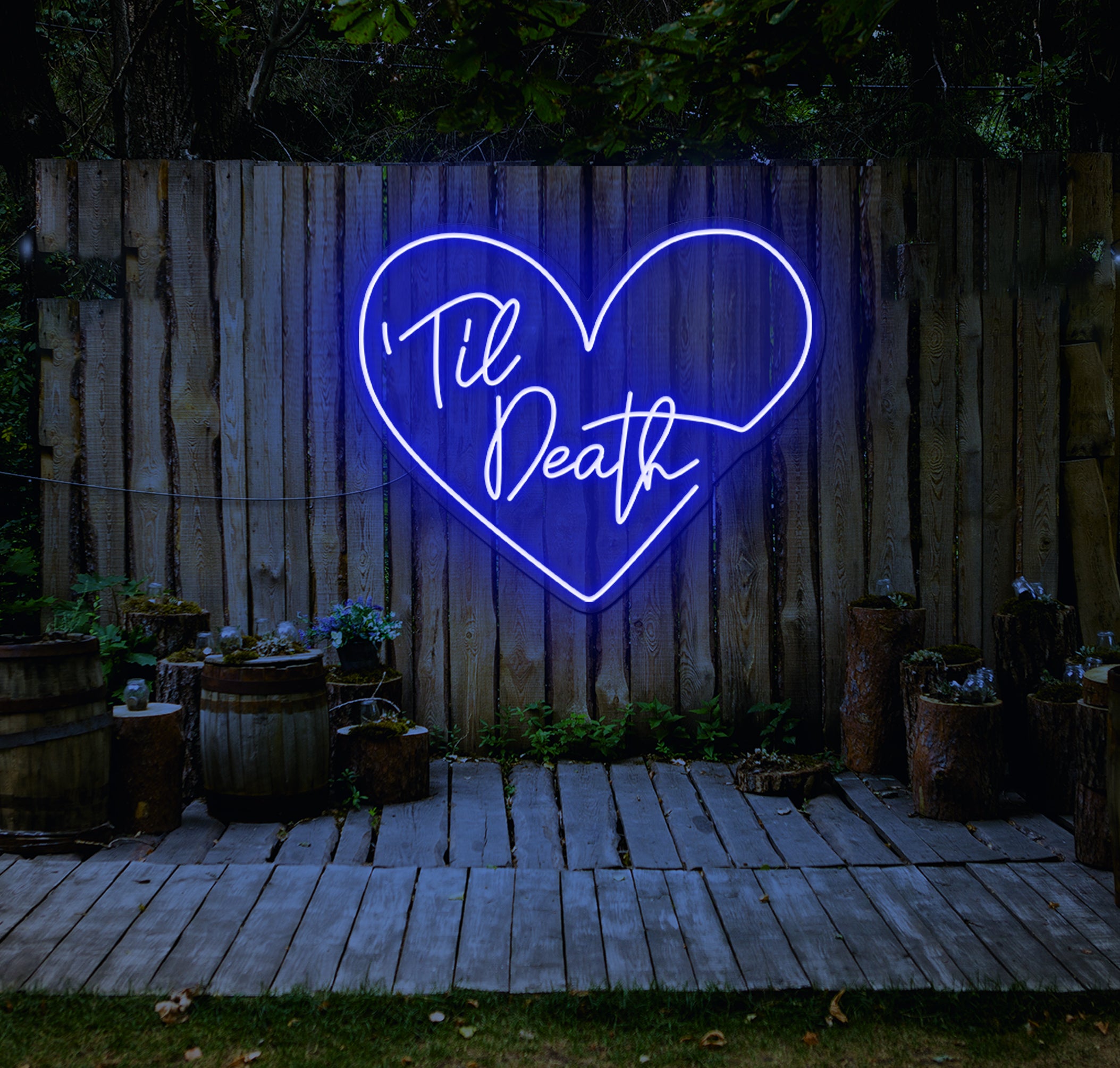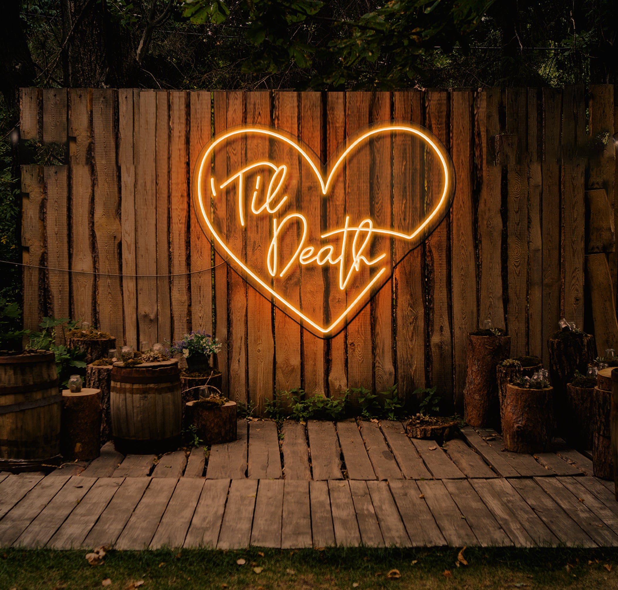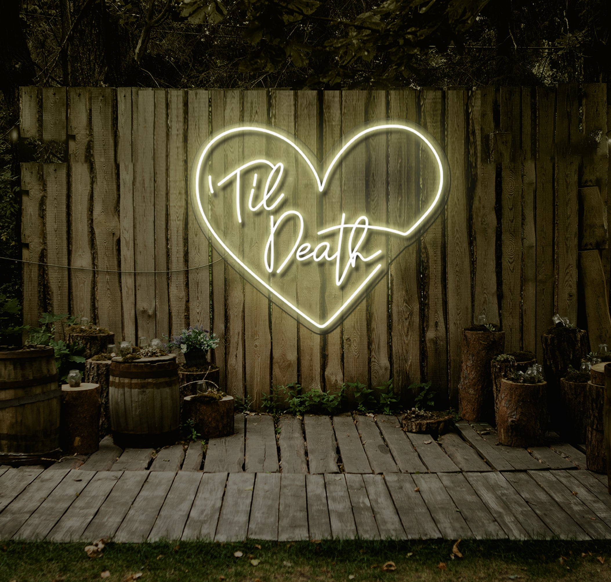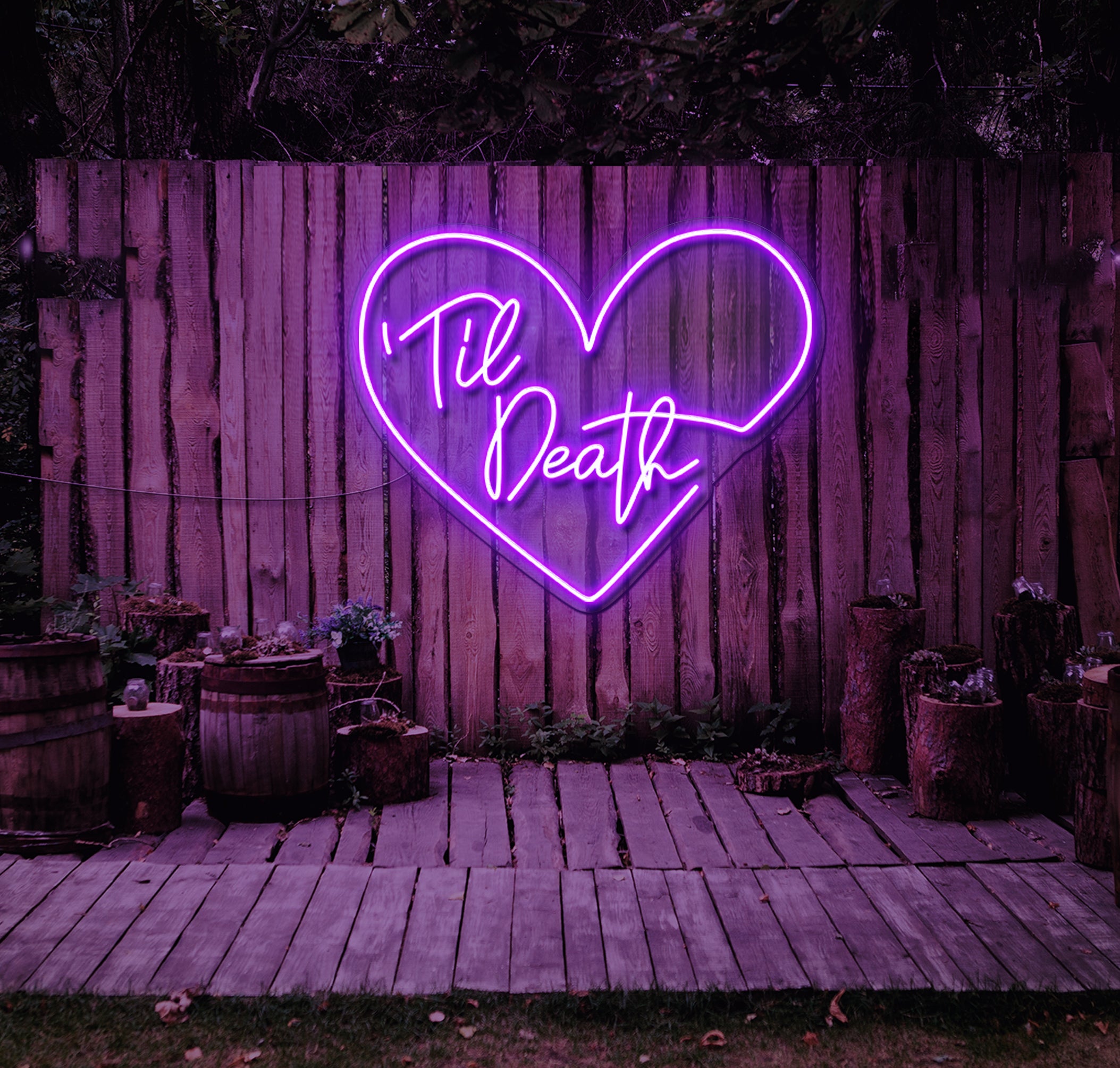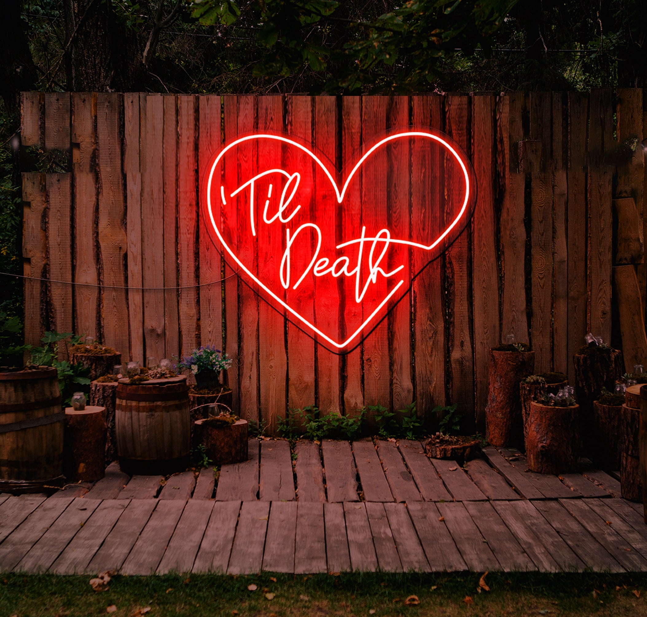 Let The Neon Factory bring your dark fairy tale to life with "Til Death" LED Neon Sign. Order yours today and add a touch of macabre elegance to your wedding celebration.