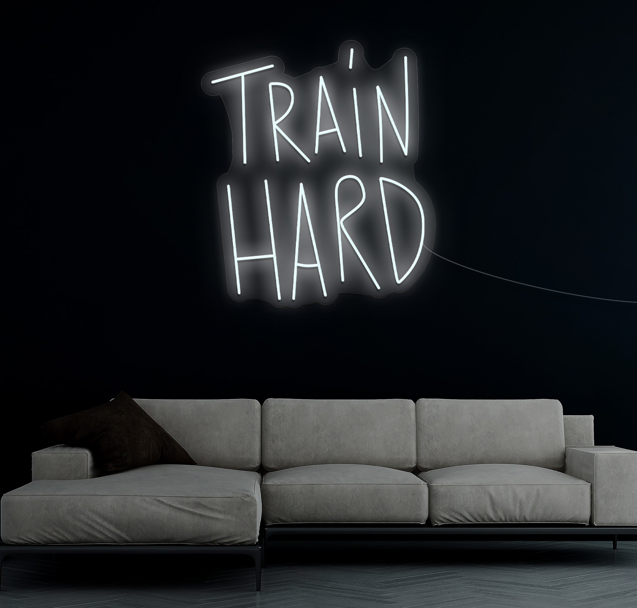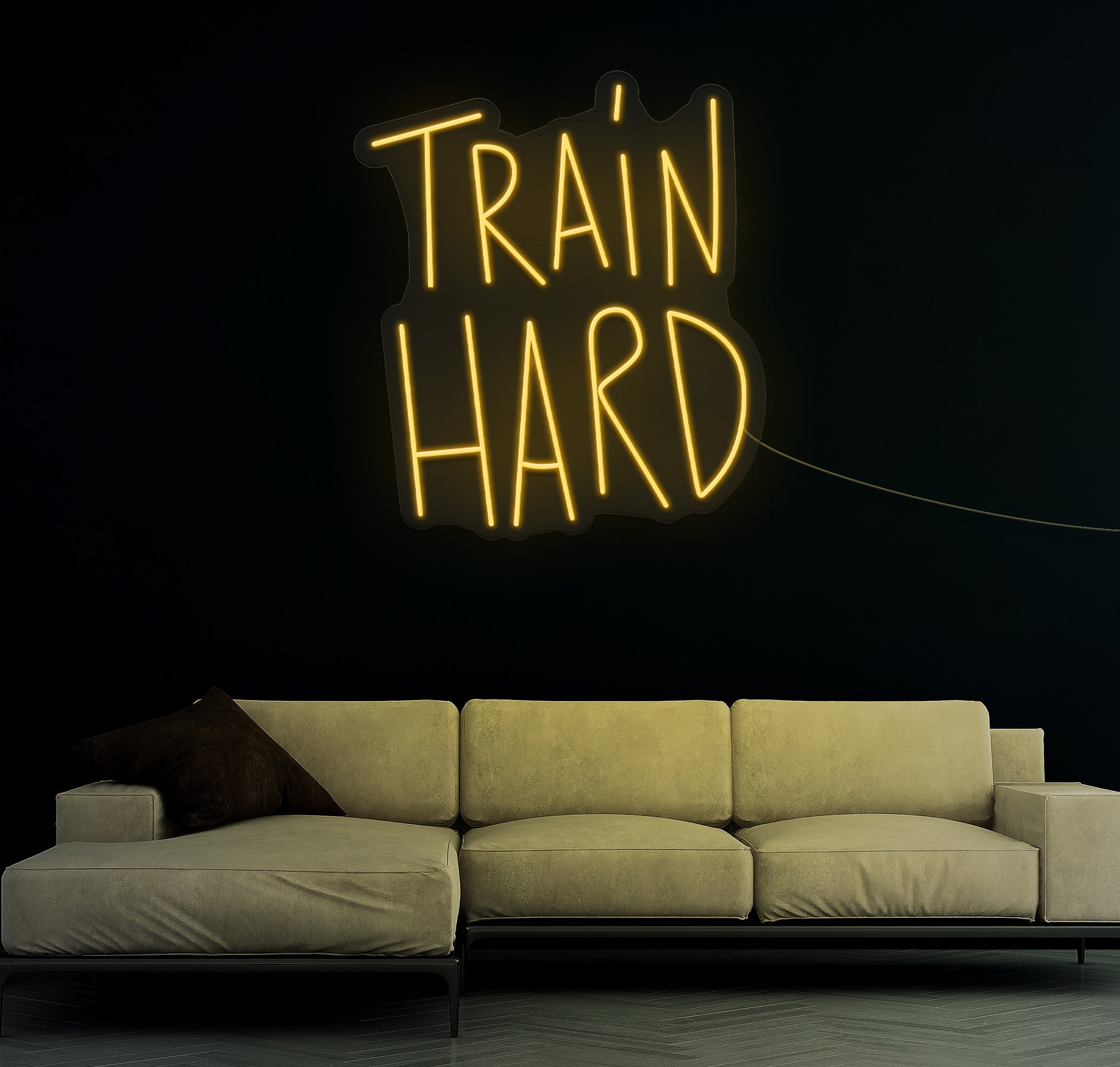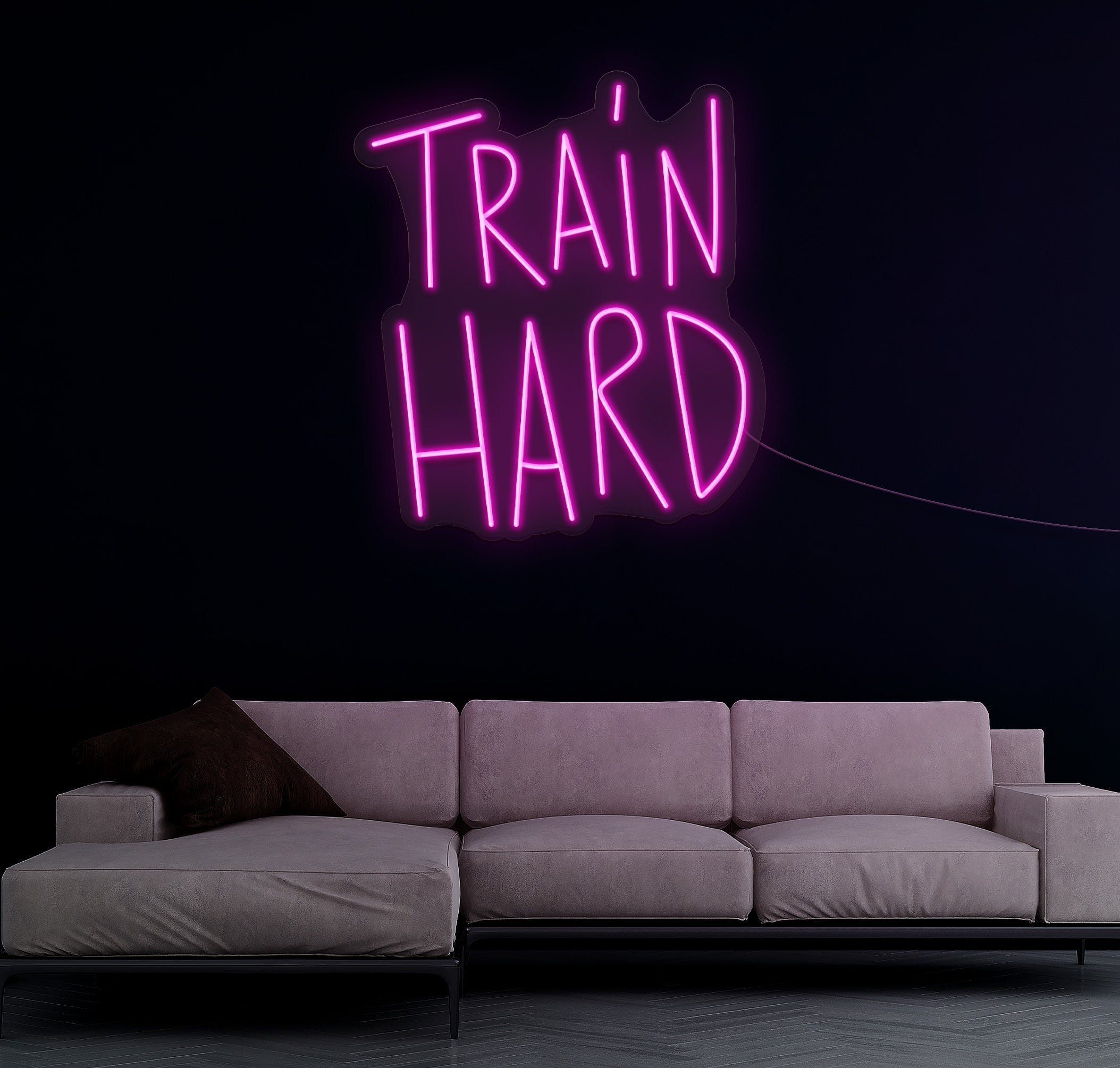 Crafted using high-quality LED technology, the "Train Hard" neon sign provides a bright, energy-efficient light that is long-lasting and safe. The LED lights are cool to the touch and durable, ensuring this sign will be a standout feature in your space for years to come. Its sleek design and powerful message make it a stylish addition to any decor, whether modern or industrial.