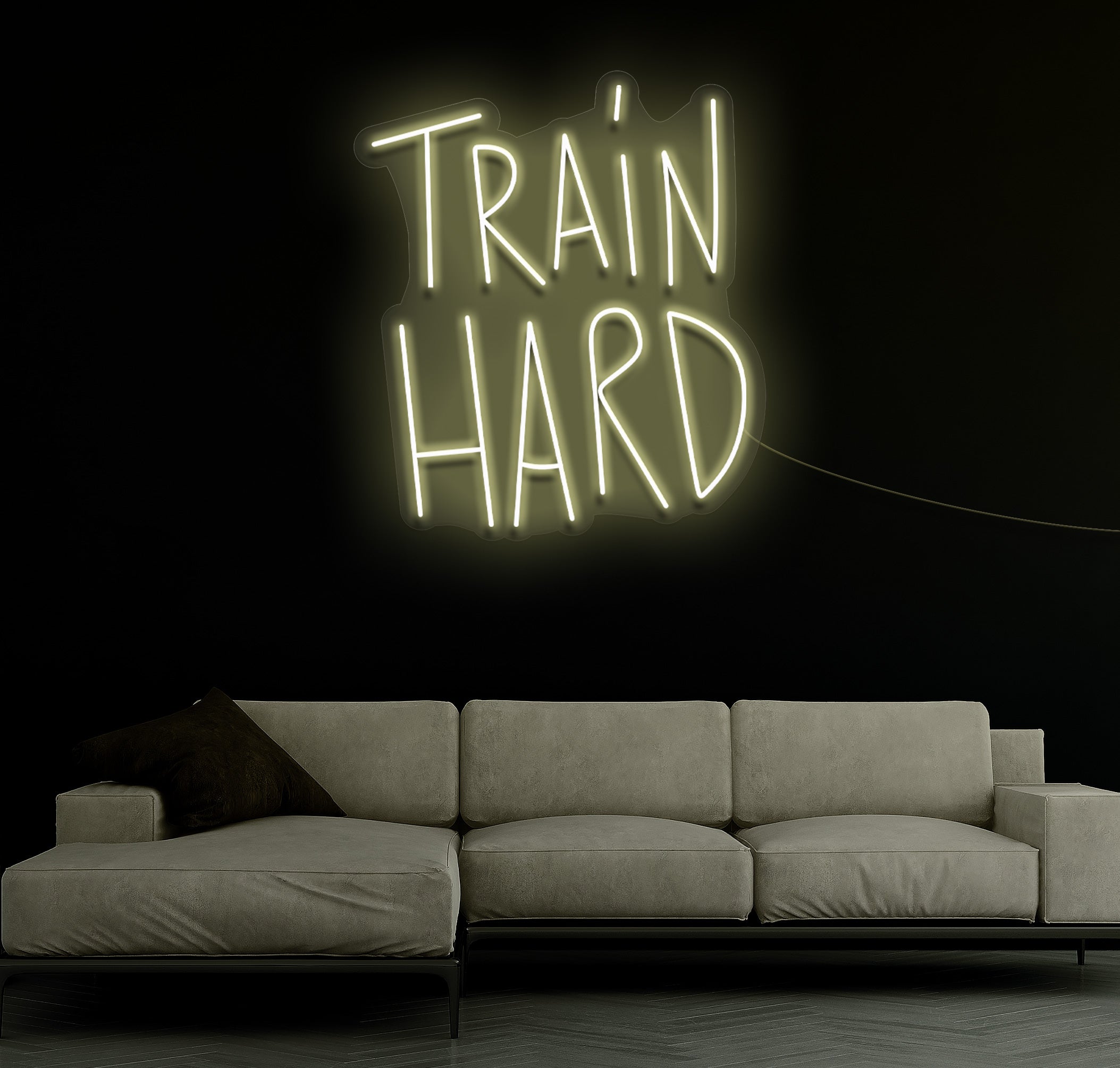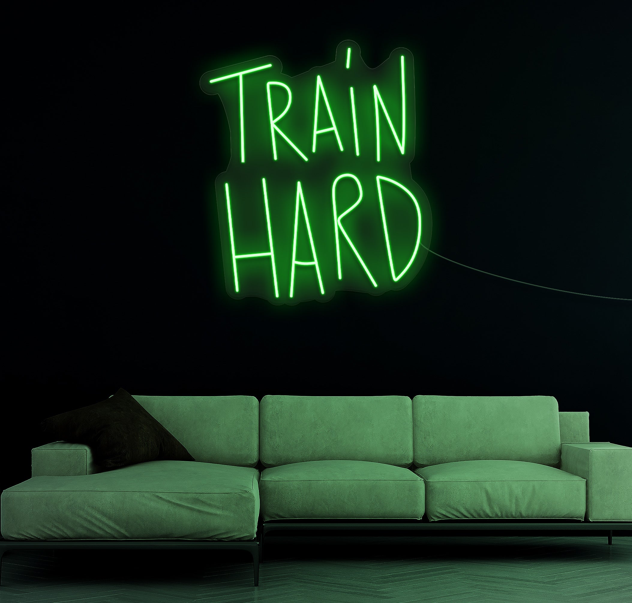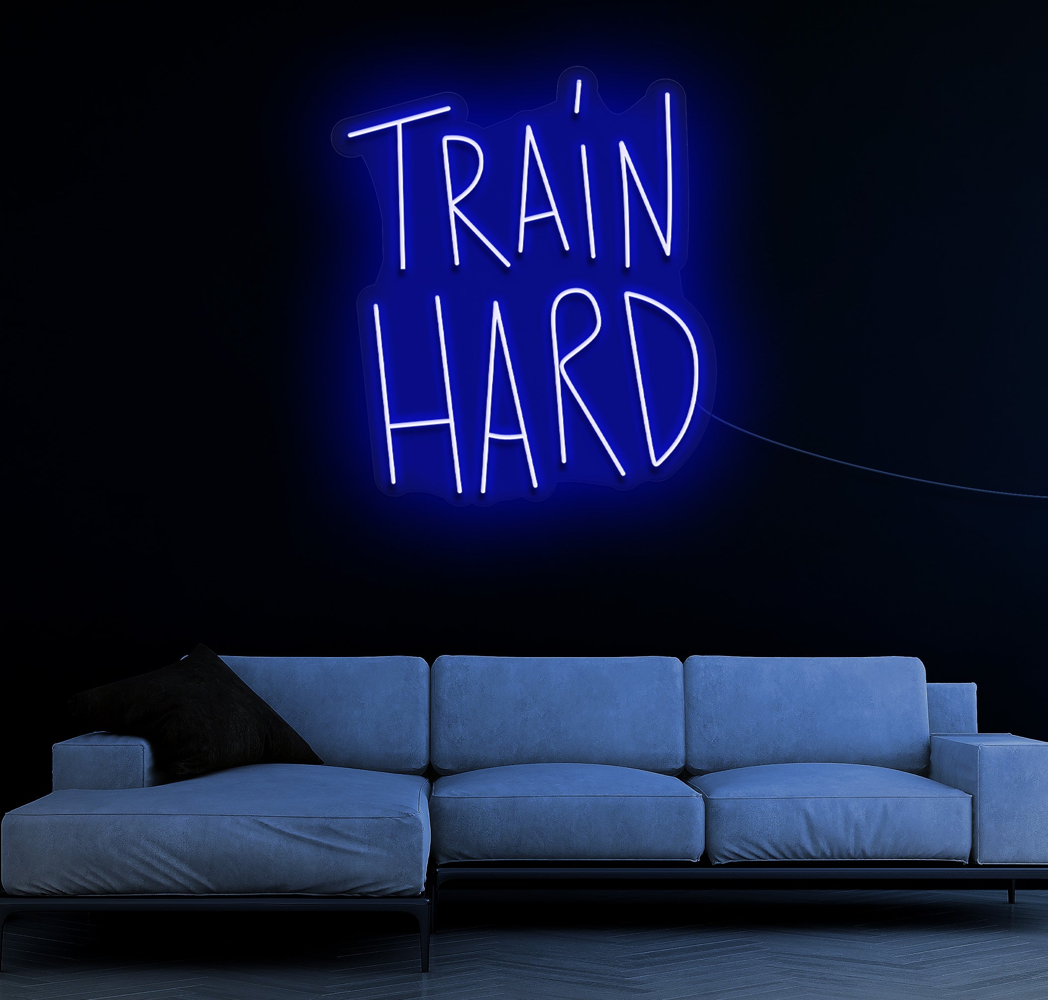 Crafted using high-quality LED technology, the "Train Hard" neon sign provides a bright, energy-efficient light that is long-lasting and safe. The LED lights are cool to the touch and durable, ensuring this sign will be a standout feature in your space for years to come. Its sleek design and powerful message make it a stylish addition to any decor, whether modern or industrial.