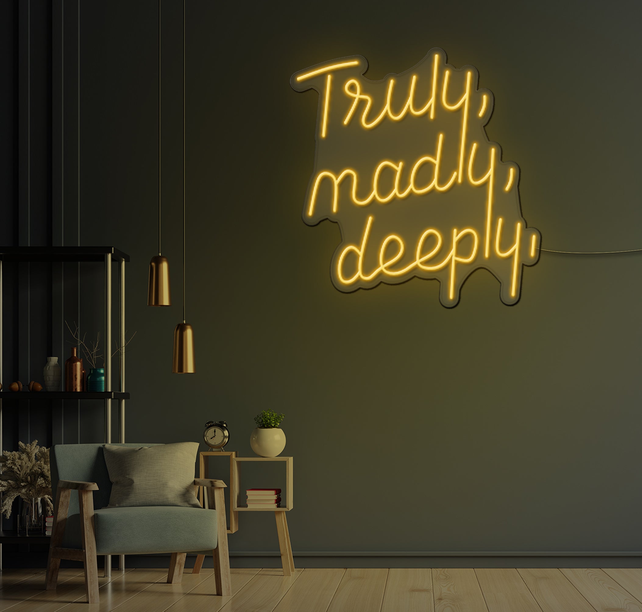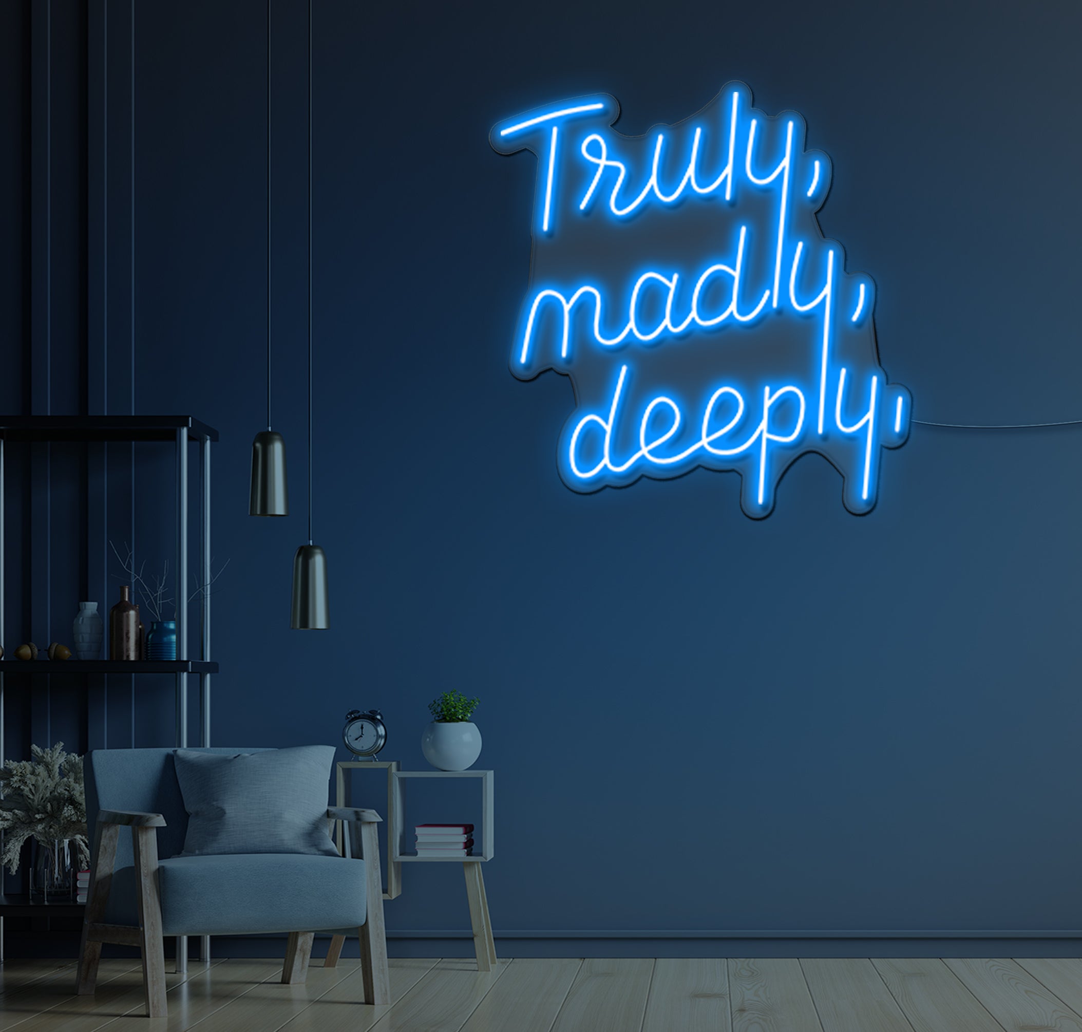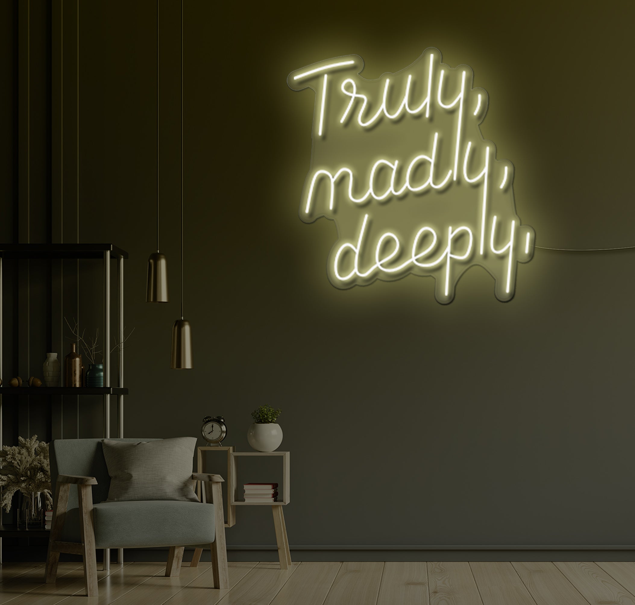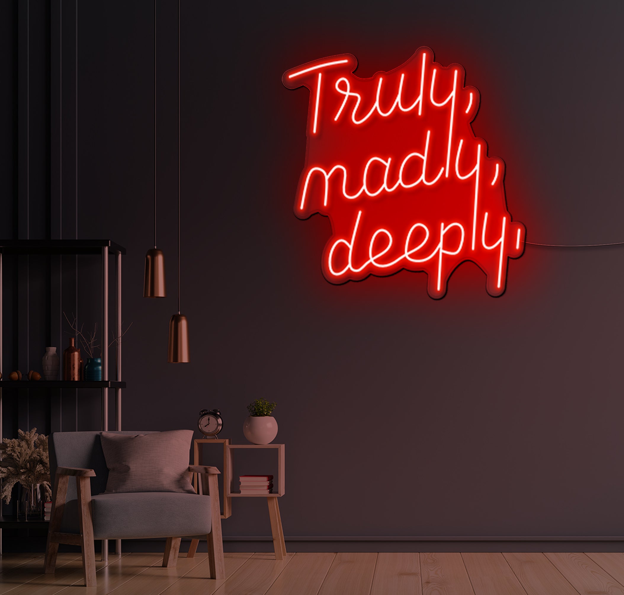 Whether you're exchanging vows, dancing the night away, or simply revelling in the joy of being together, "Truly, Madly, Deeply" LED Neon Sign from The Neon Factory is the perfect choice to illuminate your wedding day with warmth and affection. Order yours today and let the radiant glow of LED neon enhance the magic of your celebration.