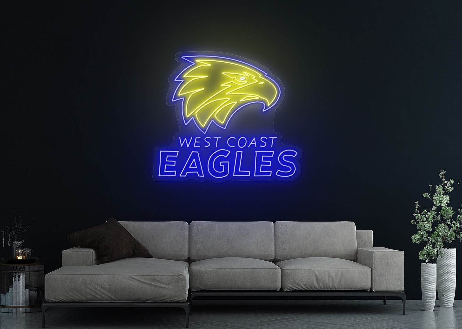 Soar to new heights with the WC Eagles neon sign. This customisable neon light pays homage to the West Coast Eagles, capturing the strength and majesty of the football club in a radiant display. Whether displayed in your game room, sports-themed bar, or as part of your fan collection, the WC Eagles neon sign becomes a dynamic focal point.