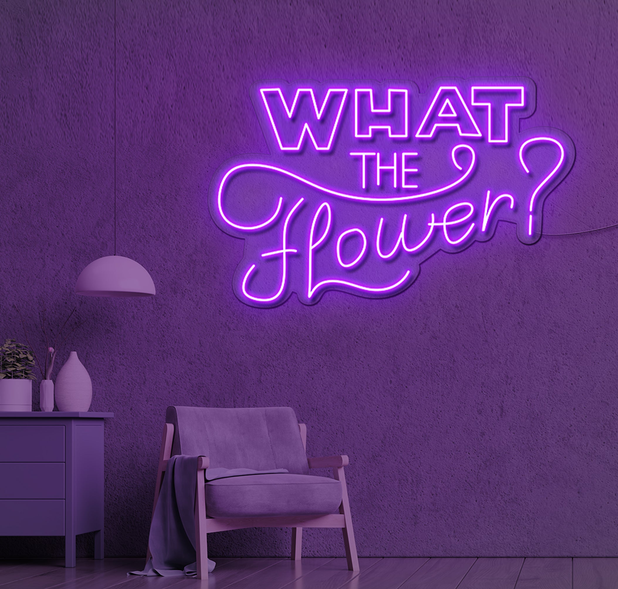 Crafted with high-quality materials and energy-efficient LED technology, the "What The Flower LED Neon Sign" is built to last and provides a long-lasting, eco-friendly lighting solution. Its versatile design allows for easy installation on walls, shelves, or tabletops, making it a versatile addition to your home, office, or event space.