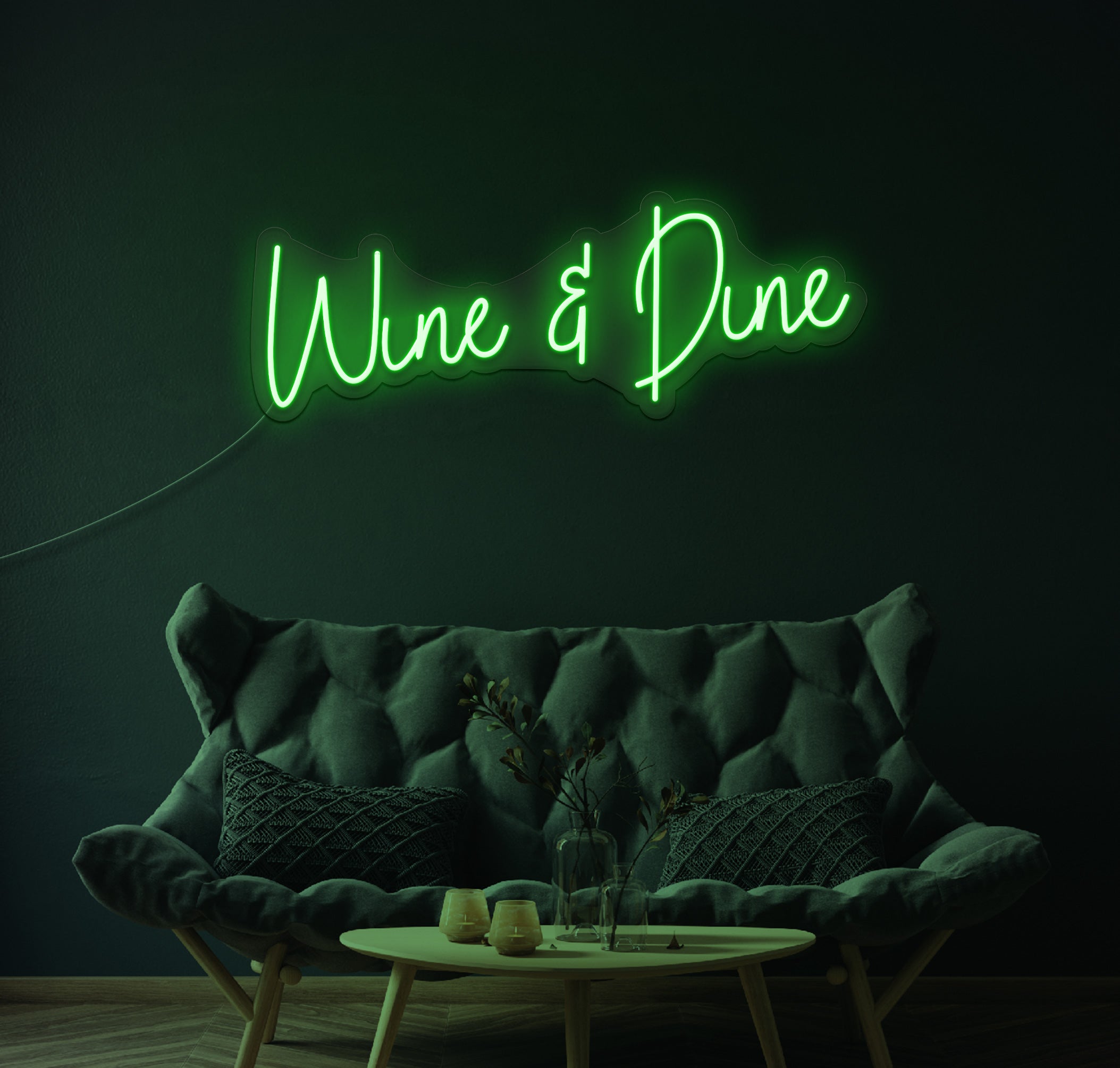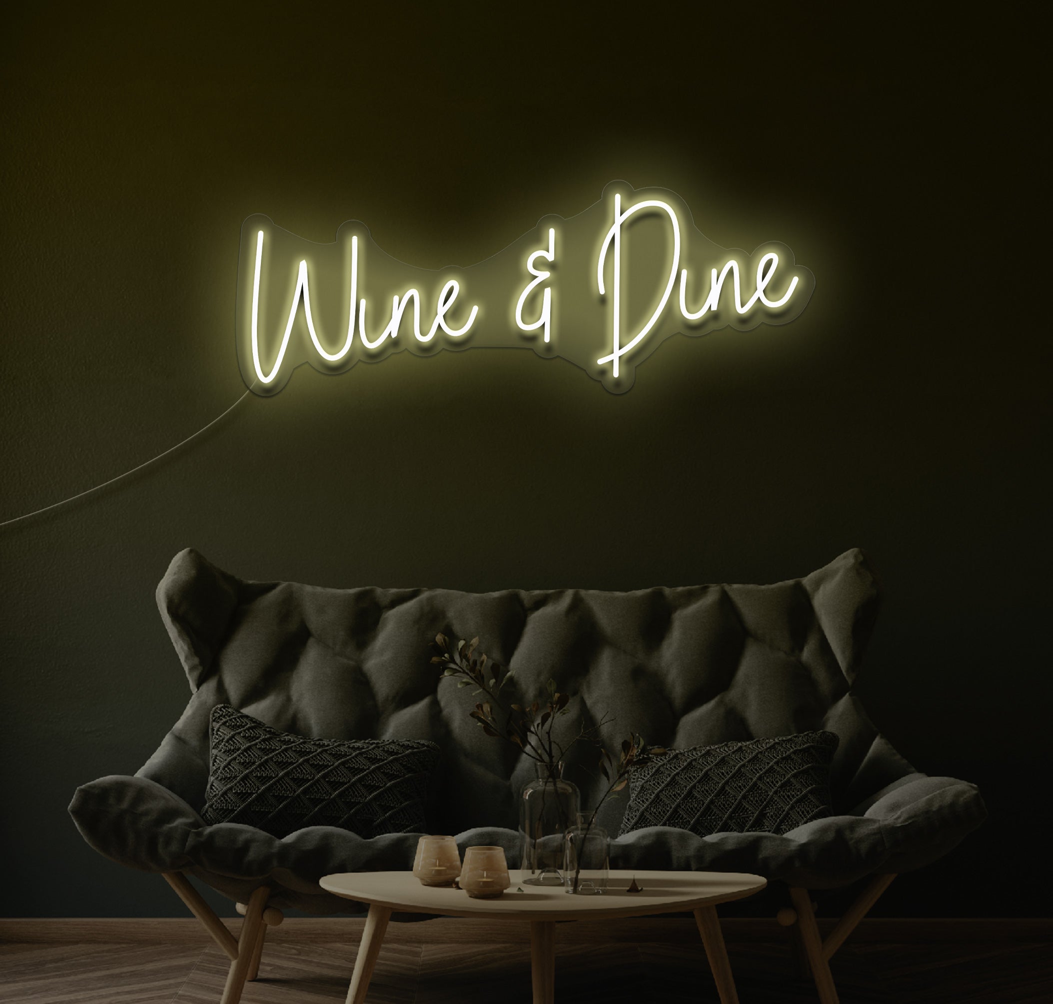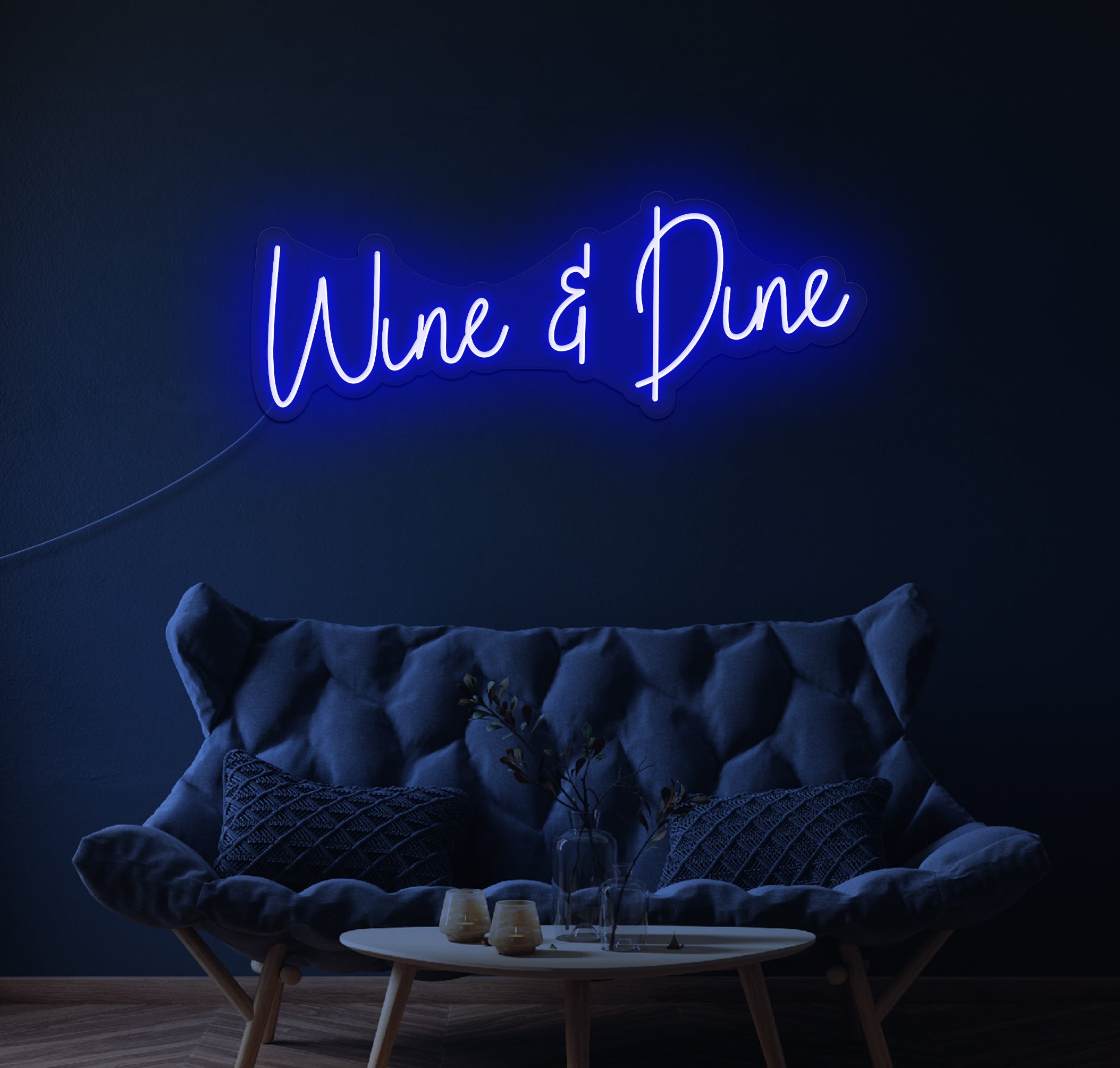 Transform your dining space with the "Wine and Dine LED Neon Sign," a perfect blend of elegance and modernity. Ideal for kitchens, dining rooms, bars, or restaurants, this vibrant neon light creates an inviting atmosphere for any gathering or special occasion. The "Wine and Dine" text is beautifully crafted in stunning LED neon, making it a focal point that enhances your decor.