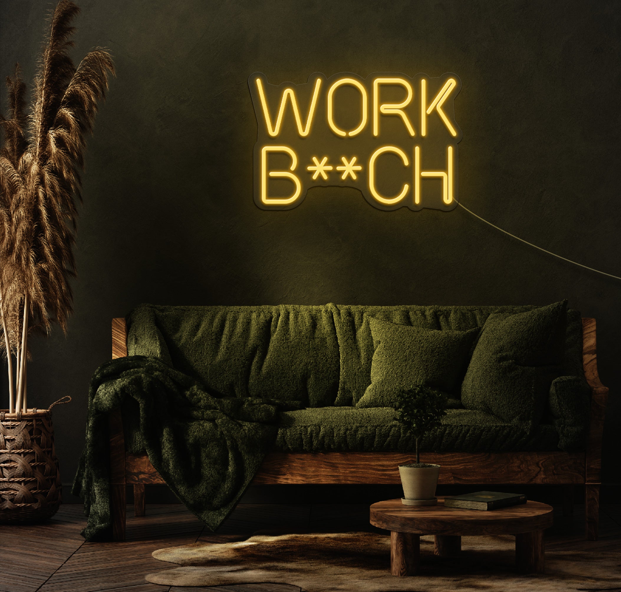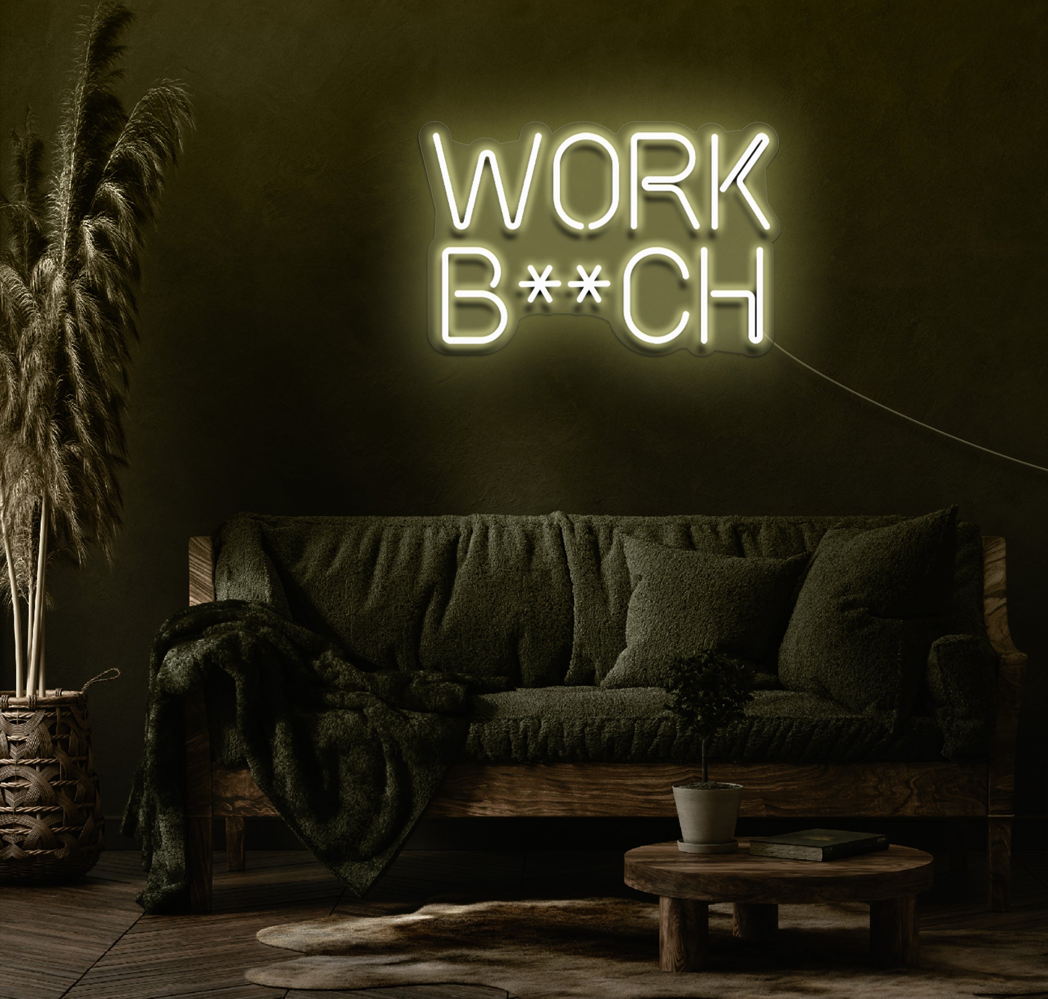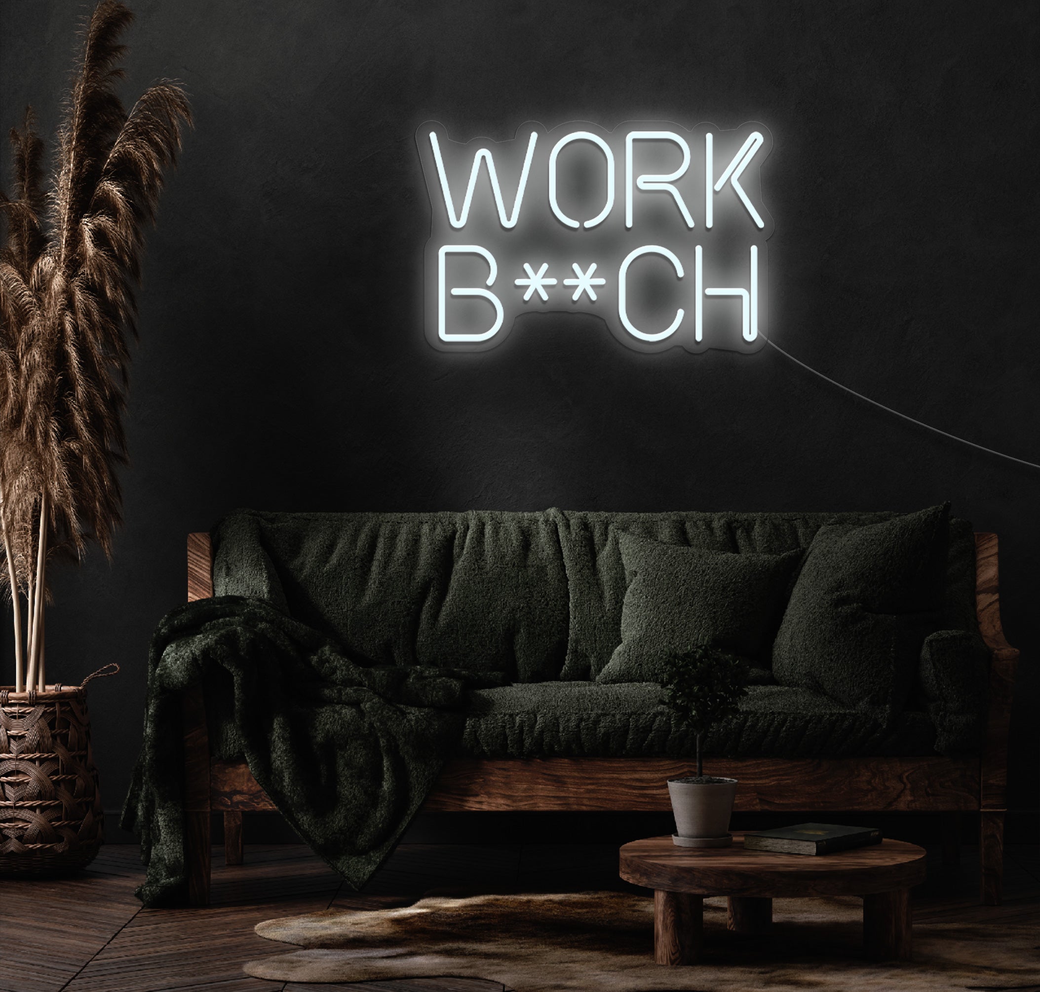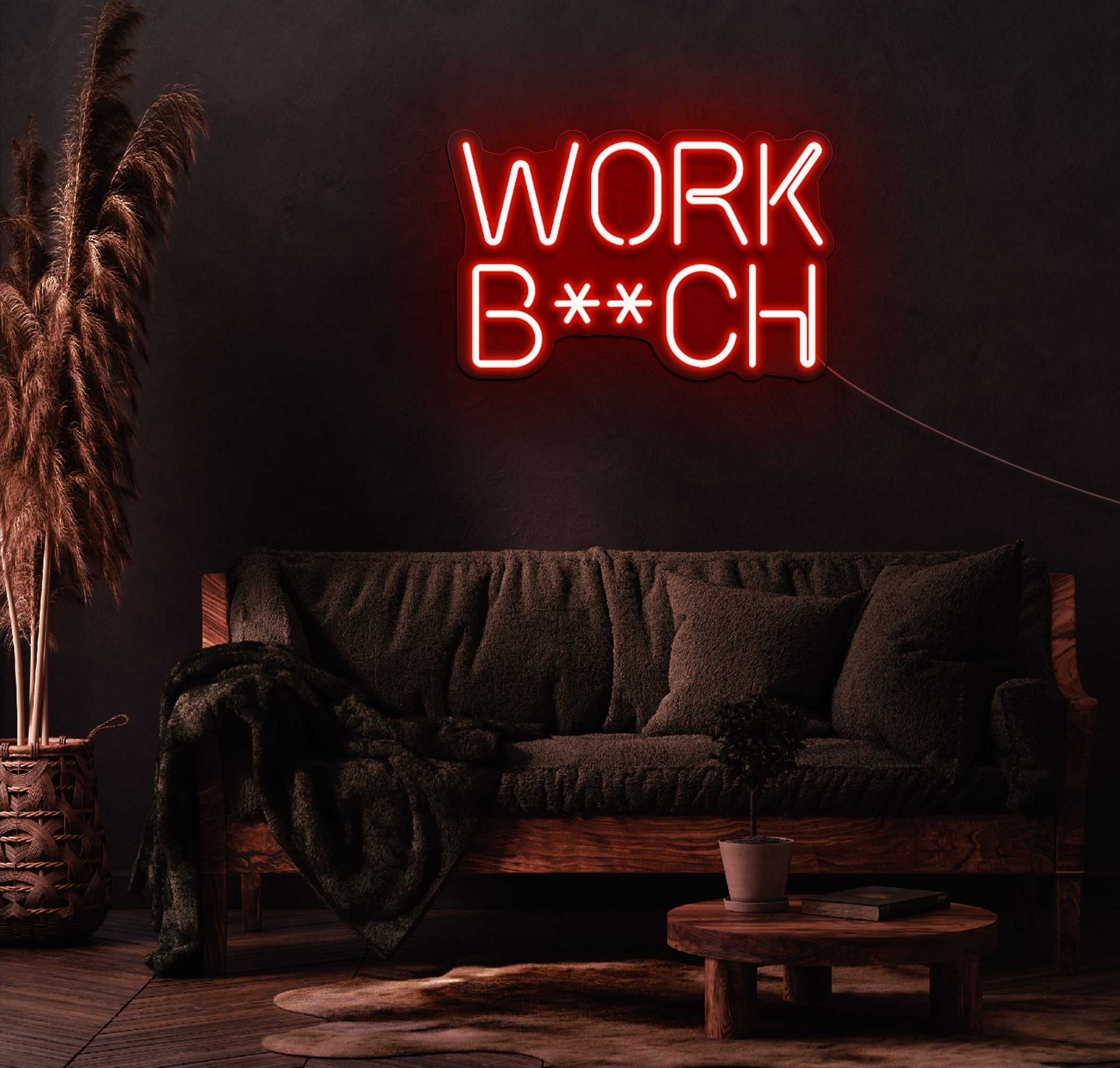 Crafted with high-quality LED technology, the "Work B**ch" neon sign delivers vibrant, eye-catching illumination that replicates the classic neon look while offering the benefits of modern LED lighting. It's energy-efficient, long-lasting, and cool to the touch, ensuring safety and sustainability for continuous use.