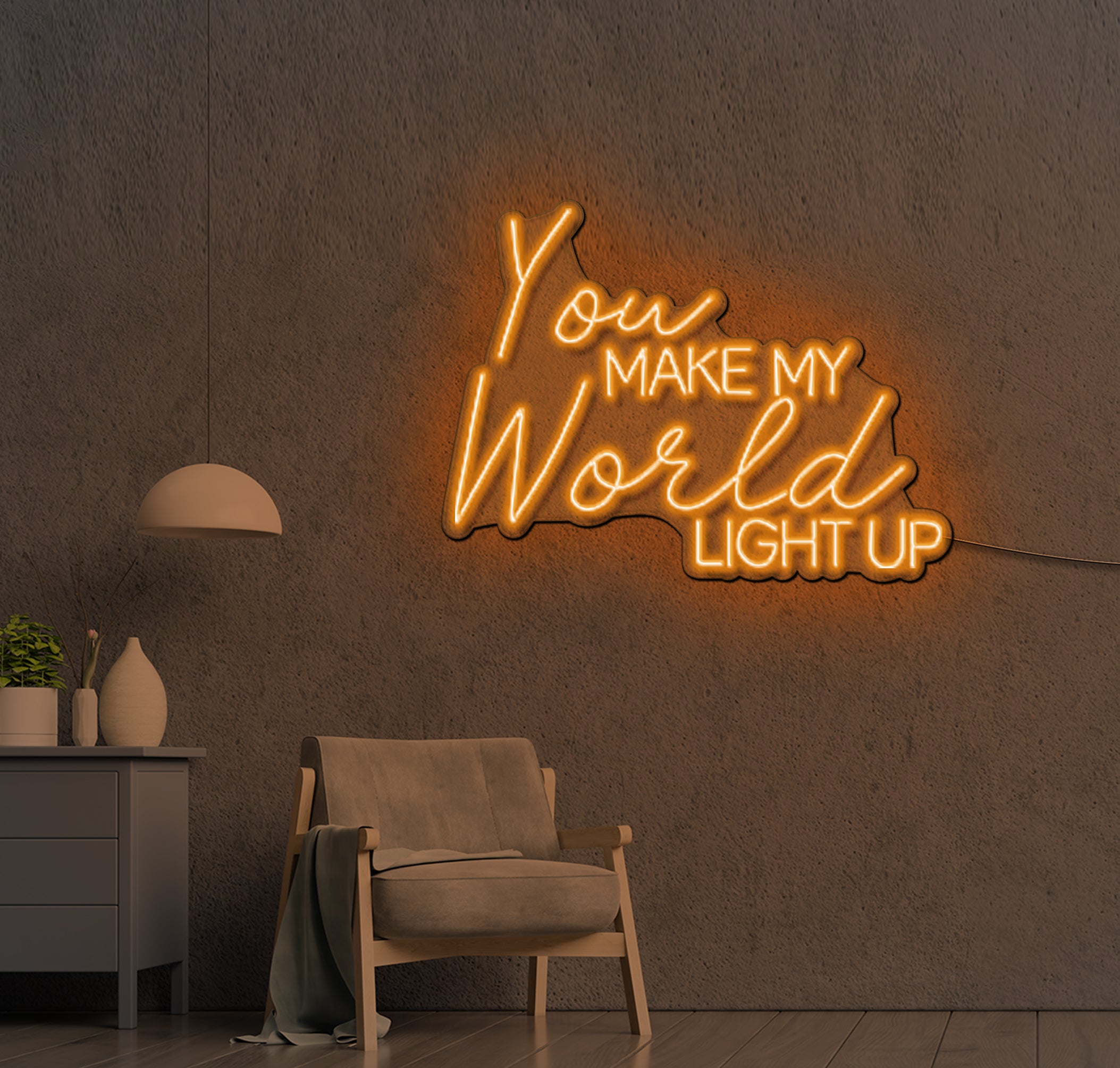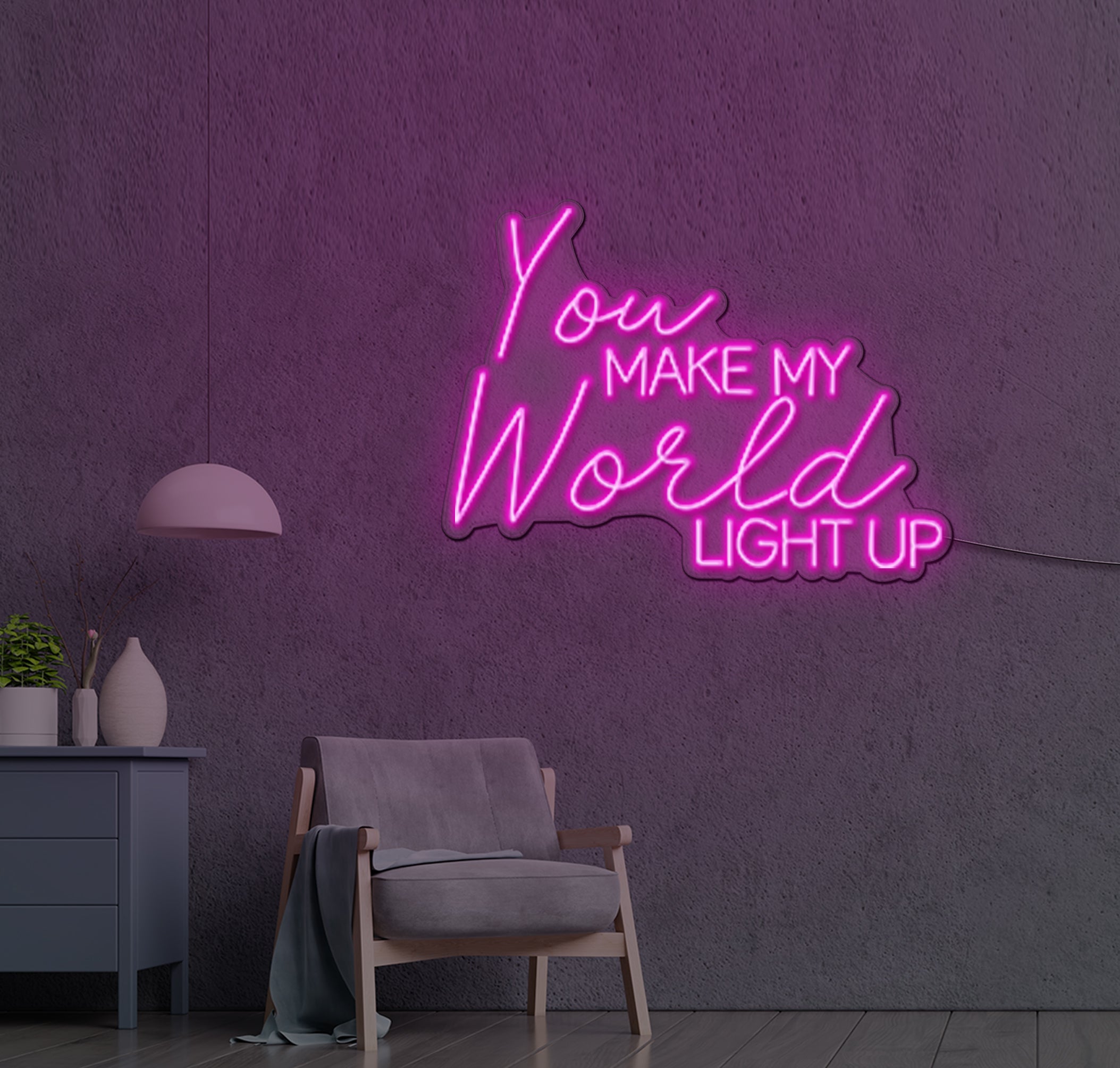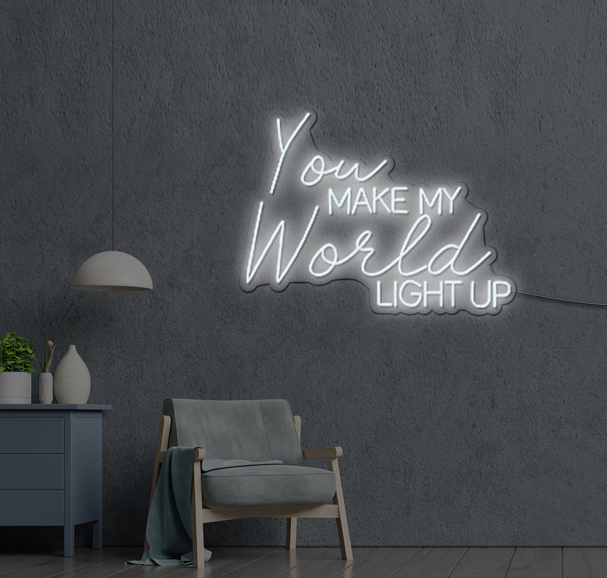 Whether you're exchanging vows, dancing the night away, or simply reviling in the joy of being together, "You Make My World LIGHT UP" LED Neon Sign from The Neon Factory is the perfect choice to illuminate your wedding day with warmth and love. Order yours today and let the radiant glow of LED neon enhance the magic of your celebration.